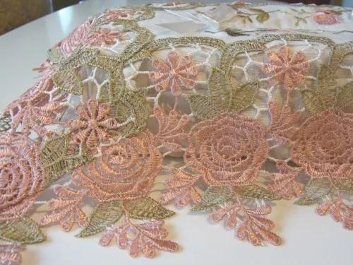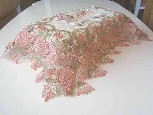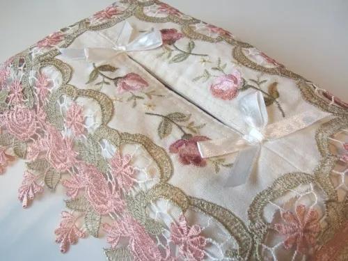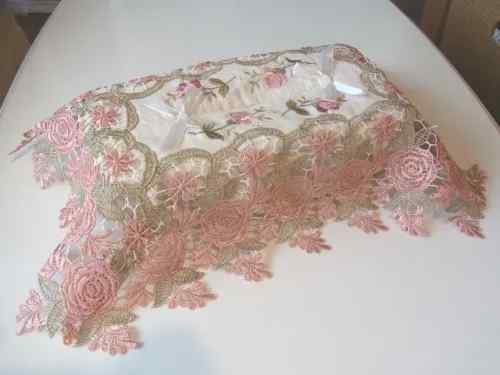 *新品*刺繍*ティッシュカバー*レース*サーモンピンク*ローズ*バラ*