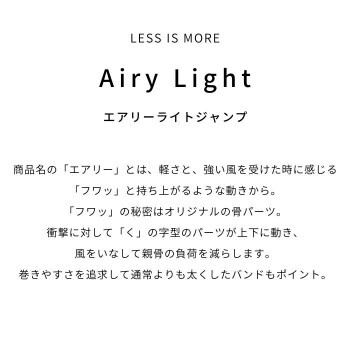 | 商品名の「エアリー」とは、軽さと、強い風を受けた時に感じる「フワッ」と持ち上がるような動きから。「フワッ」の秘密はオリジナルの骨パーツ。衝撃に対して「く」の字型のパーツが上下に動き、風をいなして親骨の負荷を減らします。巻きやすさを追求して通常よりも太くしたバンドもポイント。 ■注意事項 ・製品には尖った部分があります。常に周囲の安全を確認してご使用ください。 ・手元または骨の先端が壊れたまま使用しないでください。 ・振り回したり投げたりしないでください。 ・豪雨強風時は破損する恐れがありますので使用しないでください。 ・基準を超えた雨量によっては雨漏りする場合があります。 ・傘骨の構造部に手を触れないでください。 ・傘生地は色落ちする場合もありますので乾燥が充分でない傘を服その他の物に接触させないでください。 ・自転車運転中は使用しないでください。 ・お子さまの使用時は保護者の方がご注意ください。 ・沖縄、離島は別途追加送料が必要になる場合がございます。 ・製品の色調は、お客様のご使用のモニターやブラウザ等の環境により、実物と異なる場合がございます。 |