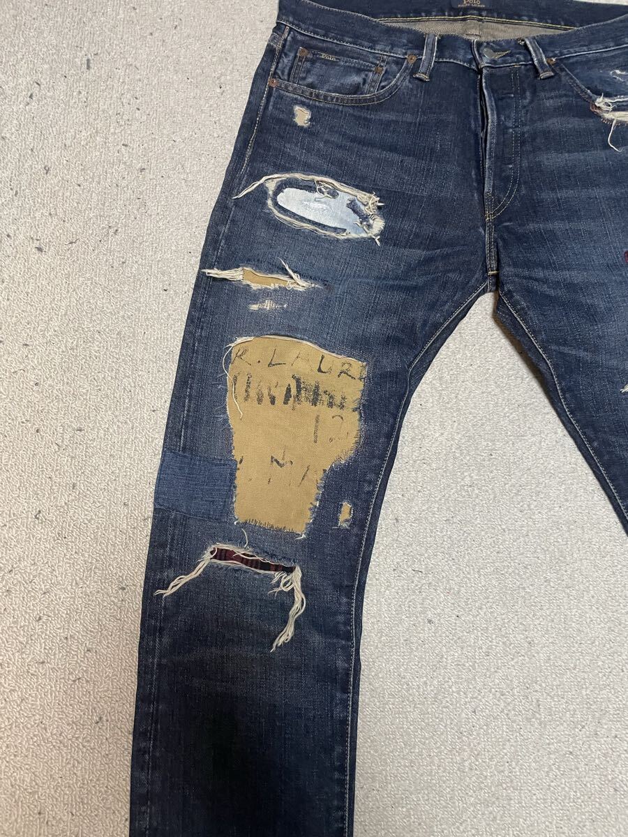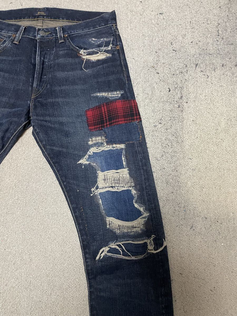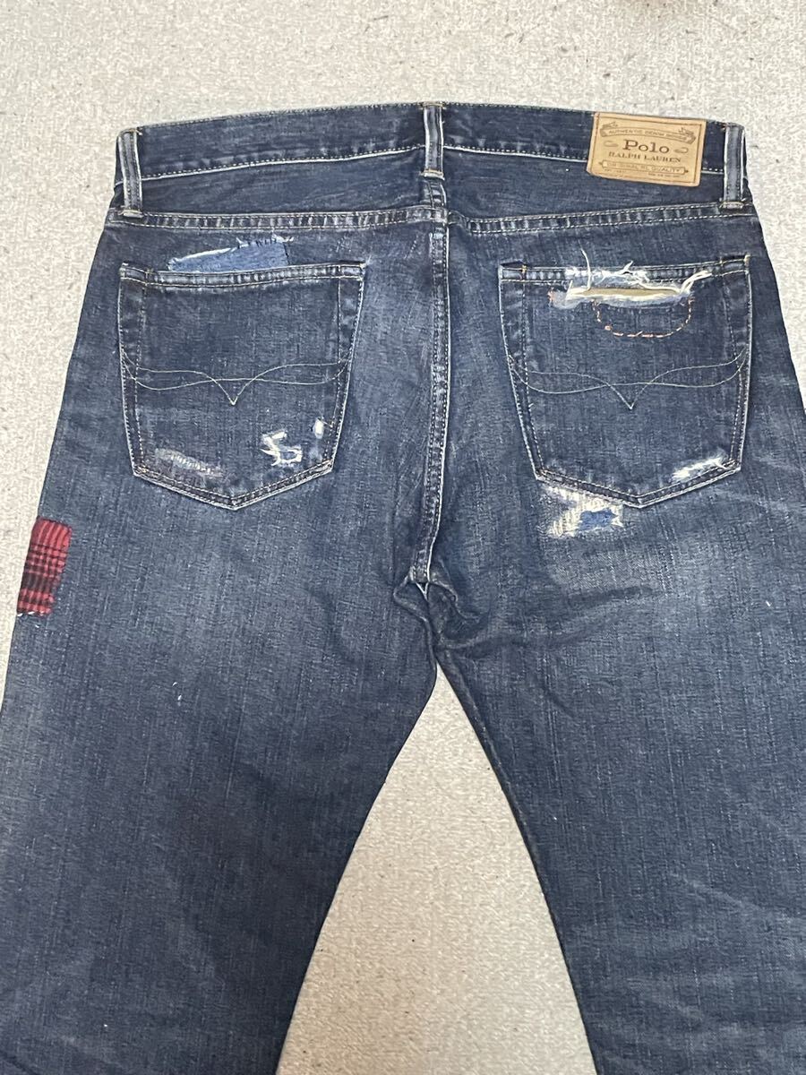 ★美USED★Polo RALPH LAUREN ポロ ラルフローレン ダメージ加工デニム SIZE=32 × 32 インディゴ