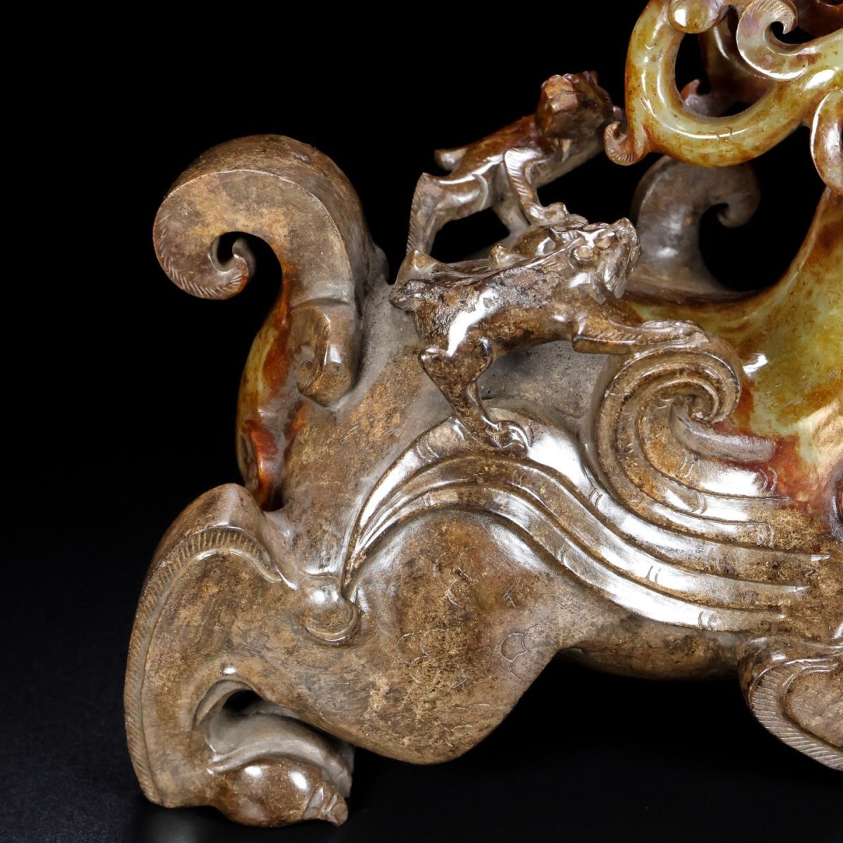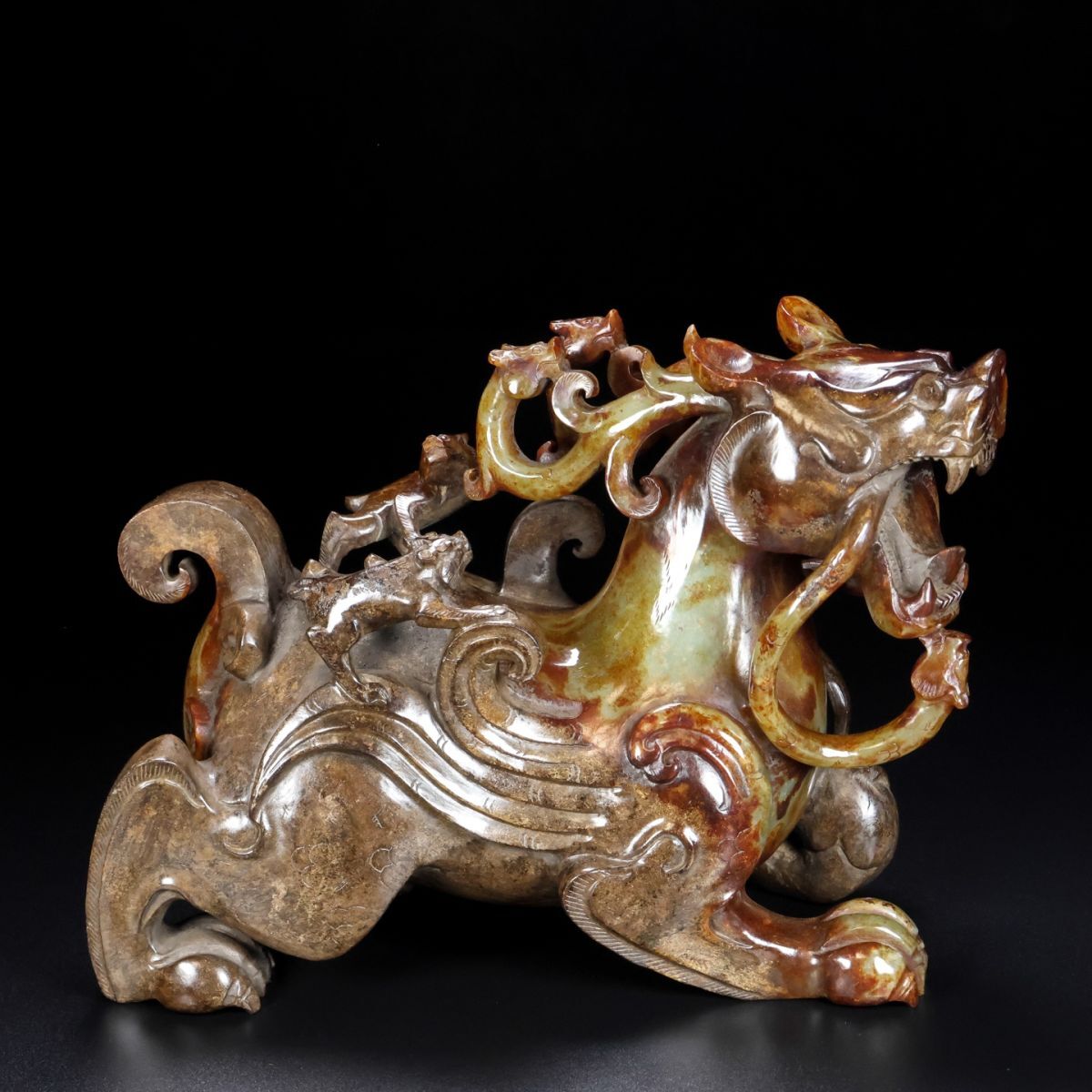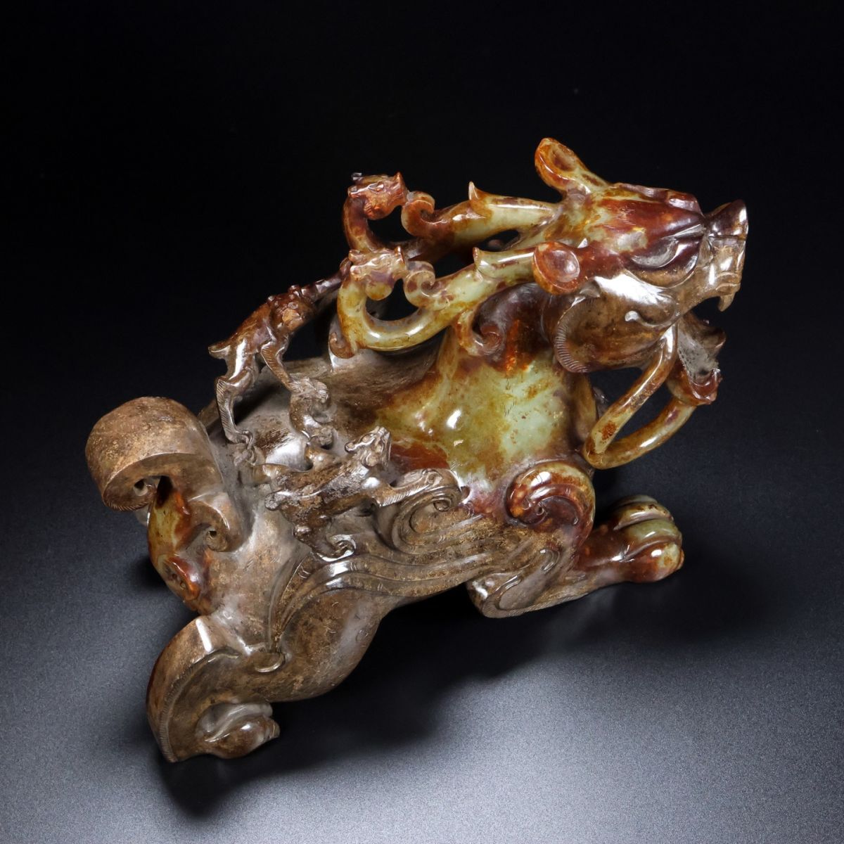 【永】漢代時期 和田玉 古玉彫 高古玉 瑞獸 極細工 置物擺件 古美術品 時代物 古董品 収集 古美味 骨董品 旧家蔵出 中国唐物 2467g