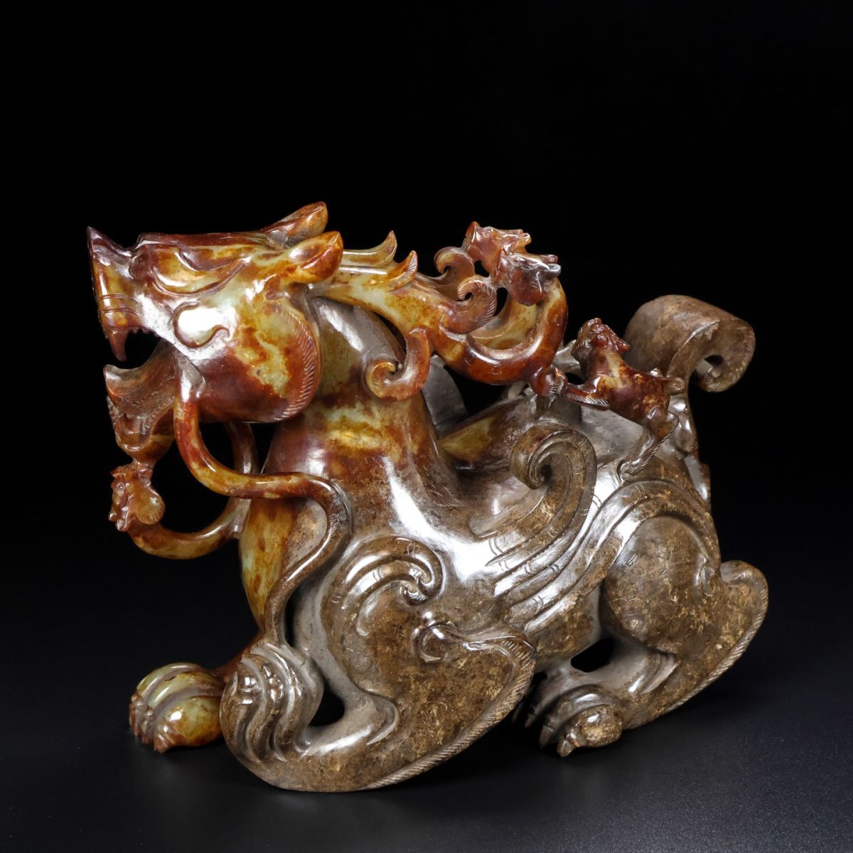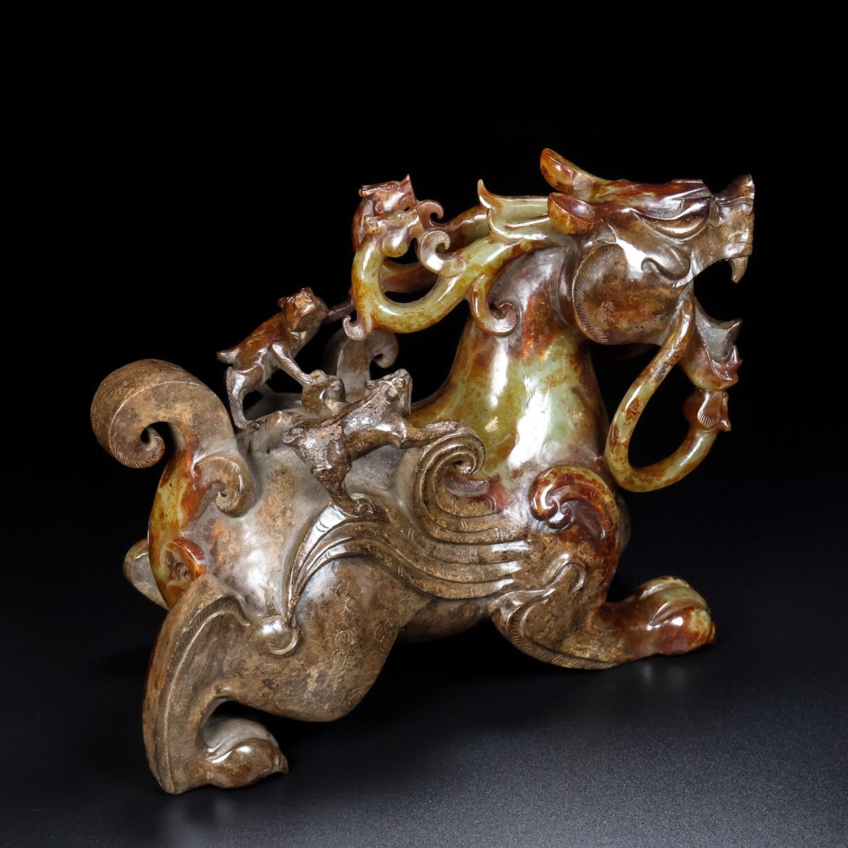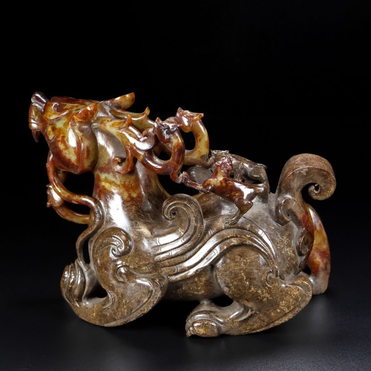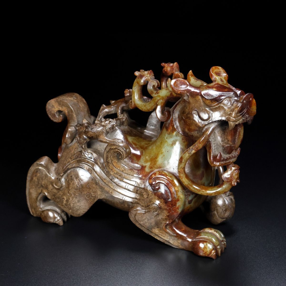 【永】漢代時期 和田玉 古玉彫 高古玉 瑞獸 極細工 置物擺件 古美術品 時代物 古董品 収集 古美味 骨董品 旧家蔵出 中国唐物 2467g