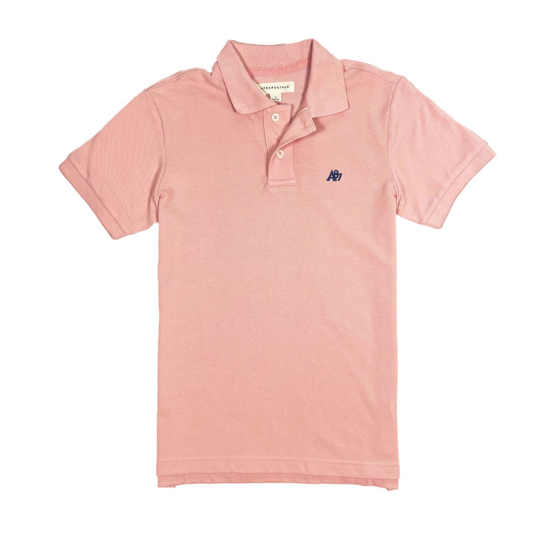 エアロポステールの定番ポロシャツ。通気性のいい鹿の子(ピケ)素材と左胸にワンポイントのA87のロゴ刺繍。