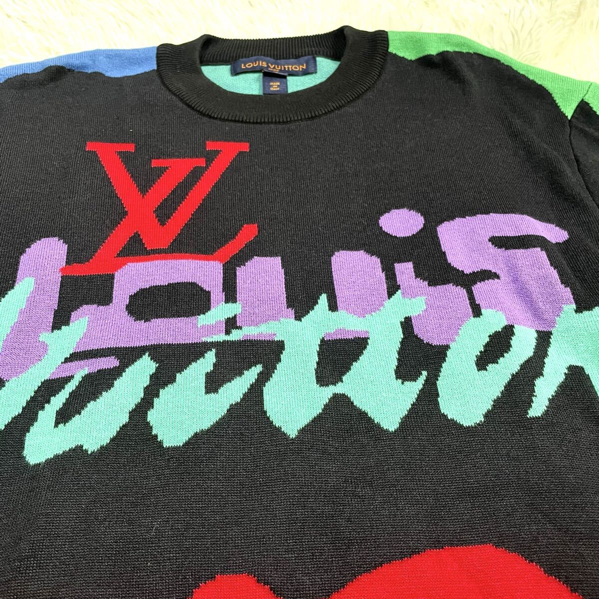 ルイヴィトン ロゴジャガード ニットセーター 22SS メンズ トップス 2054 RM212LVP マルチカラー 大きいサイズ ブラック 黒 レッド 赤 グリーン 緑 派手 ビッグロゴ