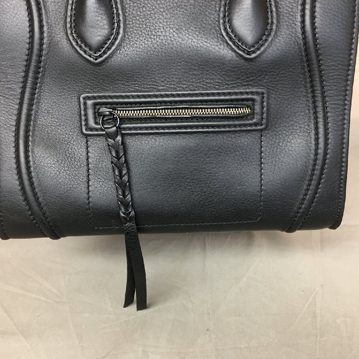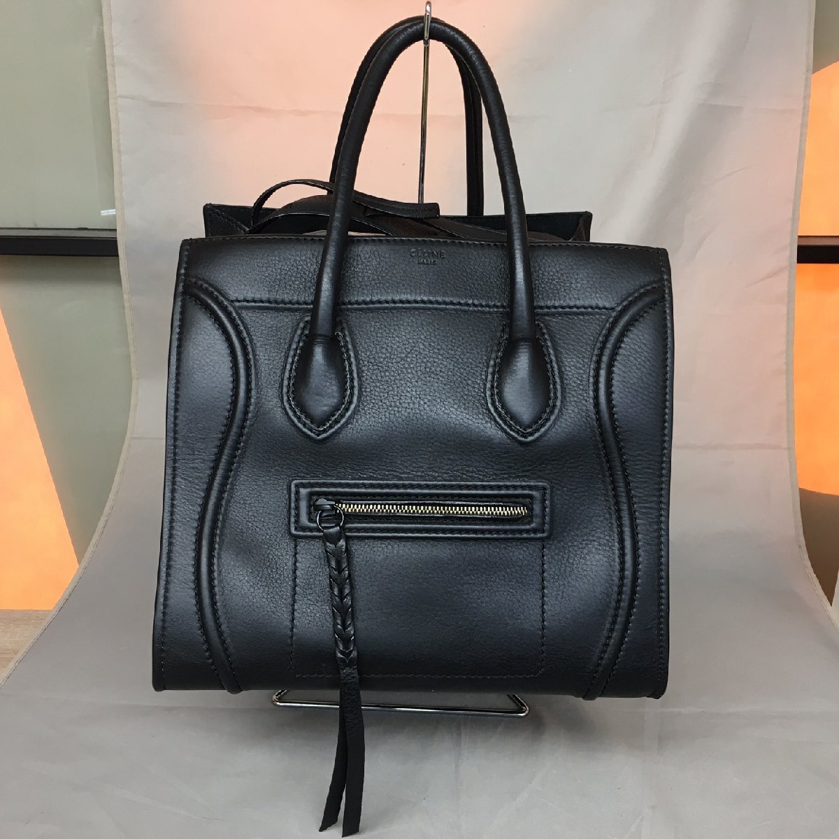 ■CELINE(セリーヌ) ハンドバッグ ■状態:B ■スモール スクエア ラゲージ ファントム ■ブラック ■カーフスキン ■サイズ:W約30xH29xD25cm ■※本体のみ ■※内側底部分に一部シミあり(画像10枚目) ■※スタンドは付属致しません(撮影用) |