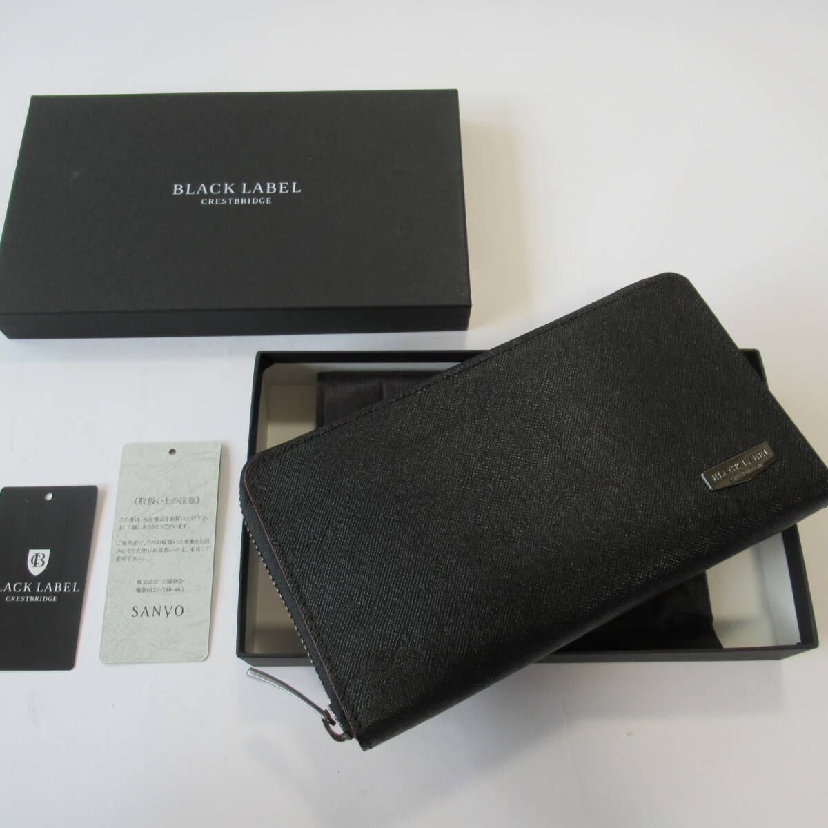 ■■202510即決■ ブラックレーベルクレストブリッジ新品ブラック エンボスレザークレストブリッジチェックラウンドジップウォレット/財布