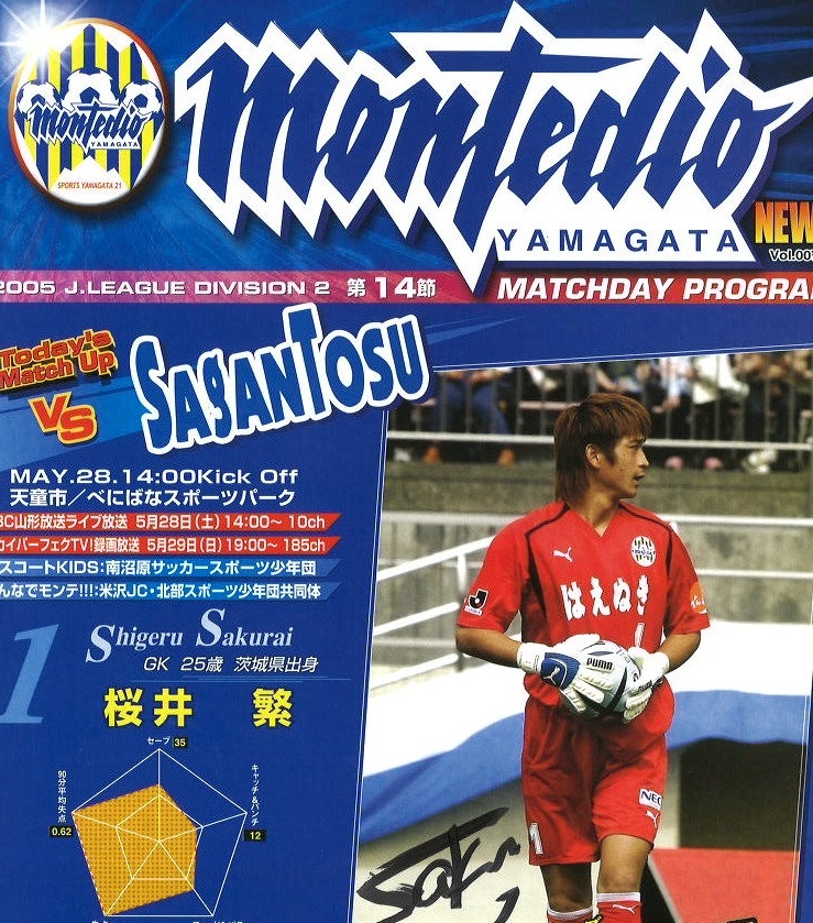 激レア品 非売品モンテディオ山形 2005 J2第14節 VSサガン鳥栖 マッチデープログラムNo.72 桜井繁選手(ヴァンフォーレ甲府 ベガルタ仙台 栃木SC)表紙 直筆サイン入