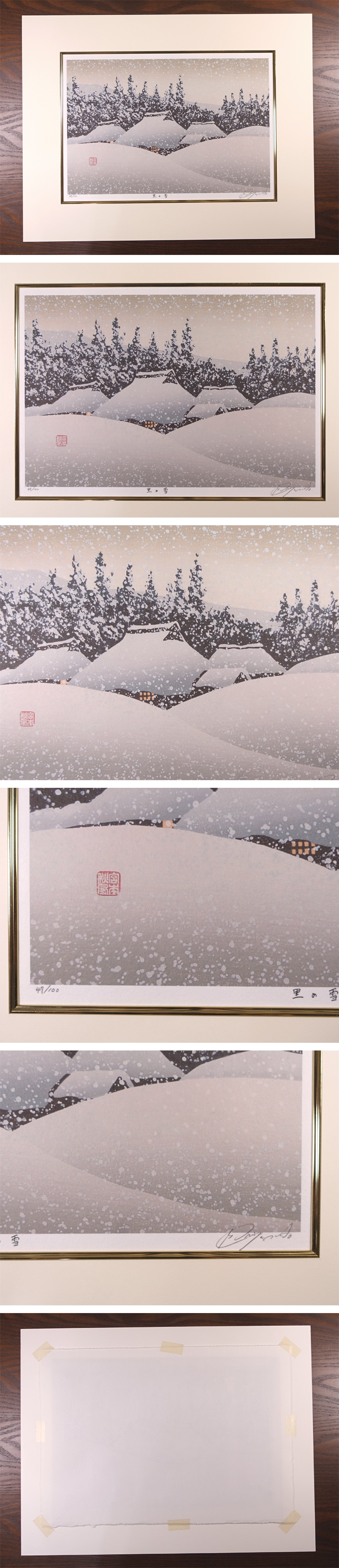 木版画界の名匠 宮本秋風 木版画 季節の風景 冬 里の雪 (ジクレー版画) 限定品 面金マット 作者直筆サイン 保証品