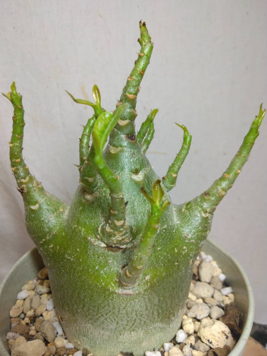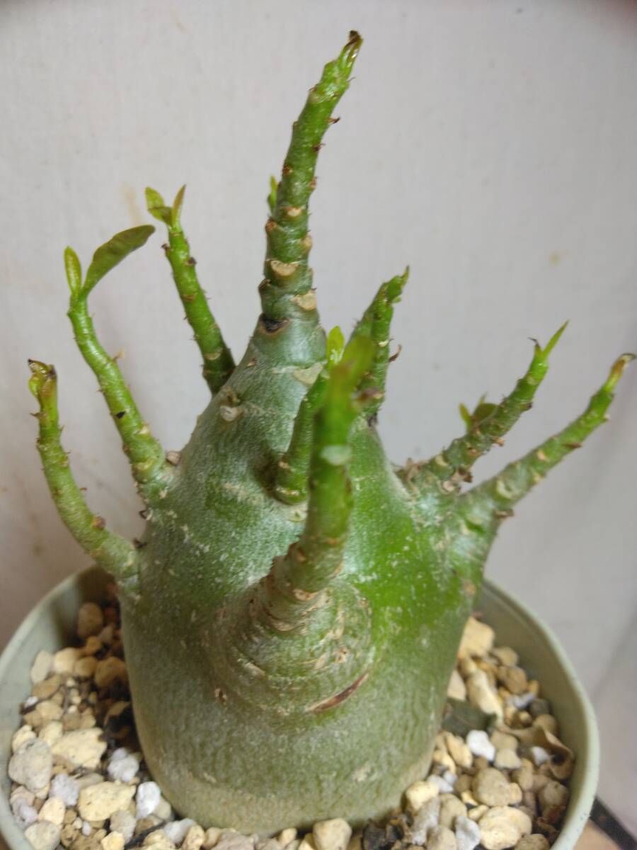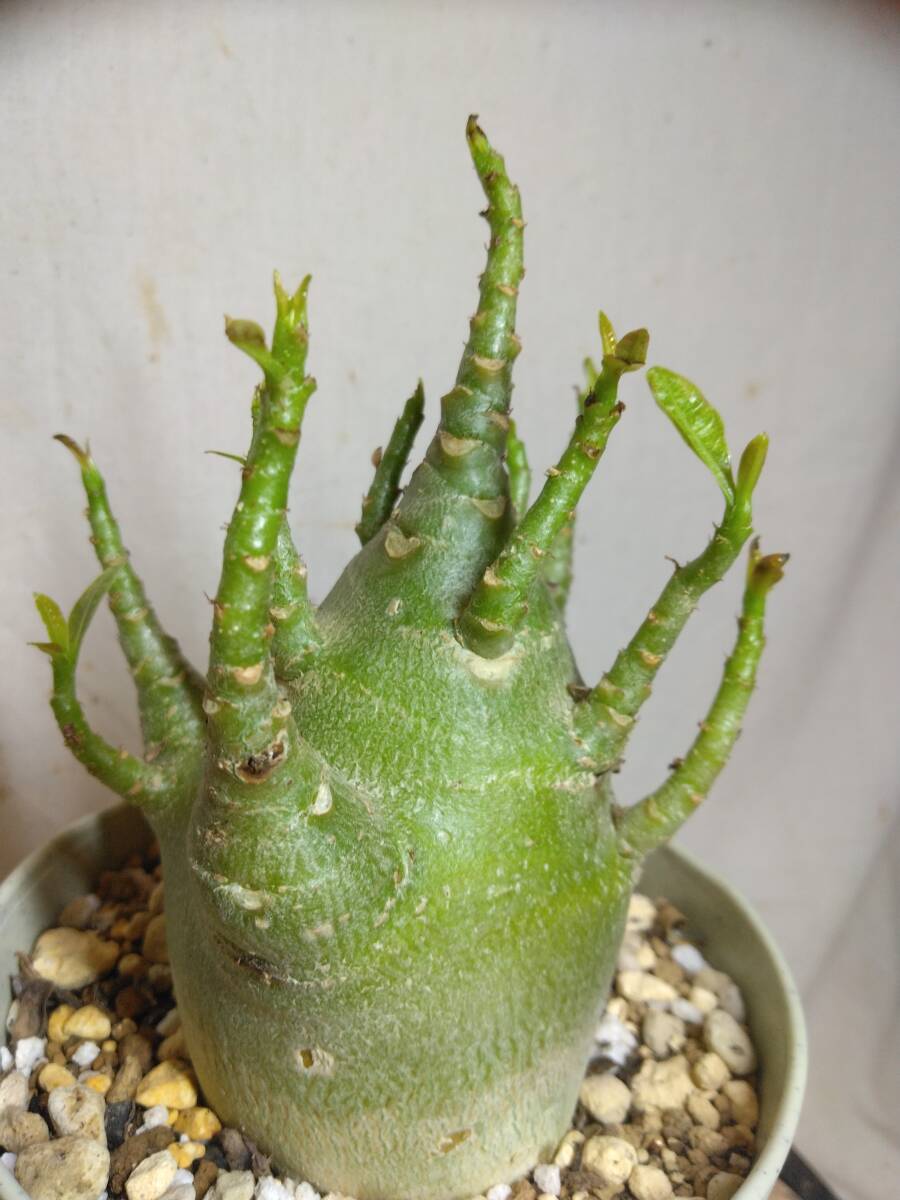 到着しましたらパキポより保湿性のある用土に植える事をお勧めします、 思ったよりも水が好きです。育成環境にもよりますが小苗ですと1カ月ほどで葉っぱが出ます。大苗の場合はもう少し時間がかかります。ドワーフという名前の通り、上に大きくなるタイプではありませんので、盆栽のように仕立てて楽しむこともできます。