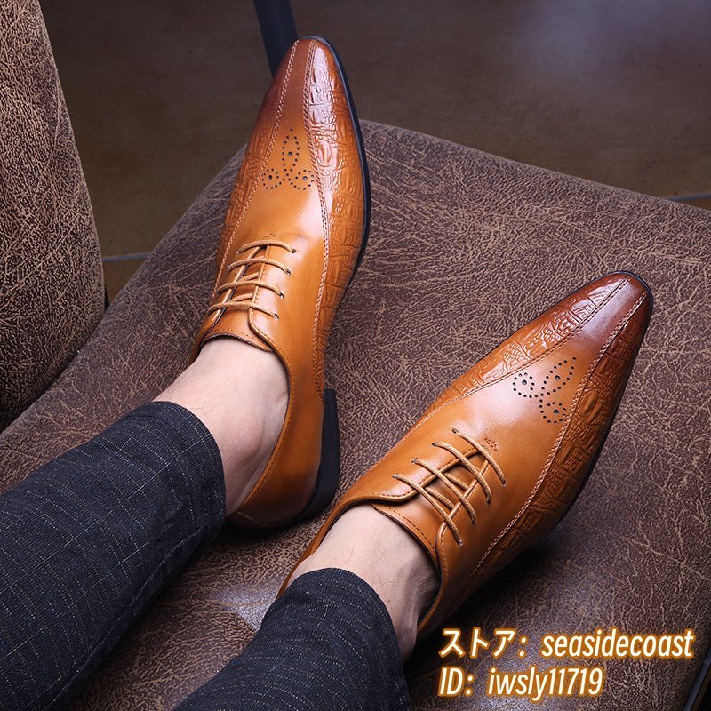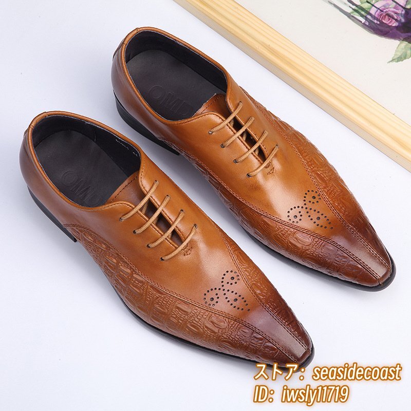 定価9万超★新品 ビジネスシューズ 最高級 本革 レザーシューズ メンズ 紳士靴 職人手塗仕上げ 超希少 イタリア 革靴 牛革 ブラウン 25.0cm