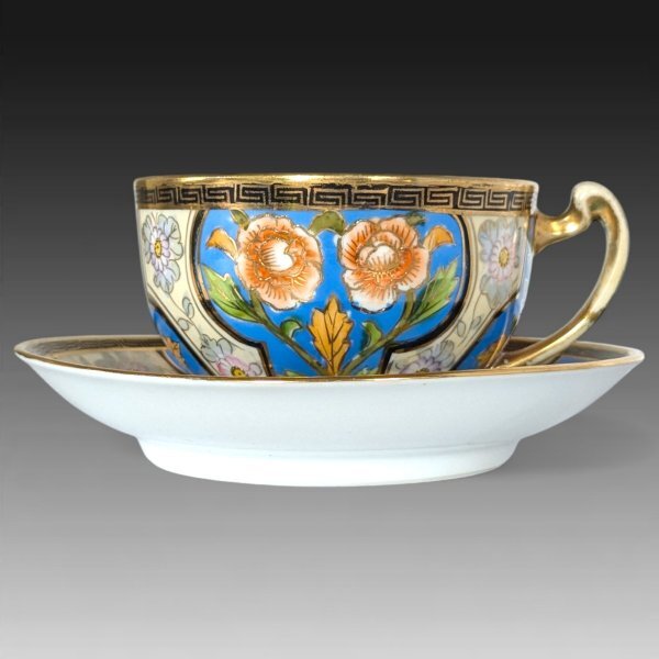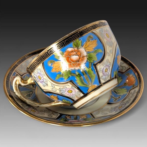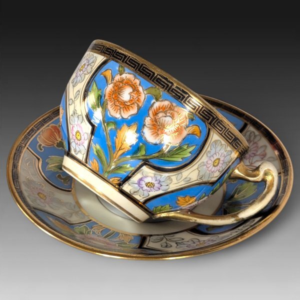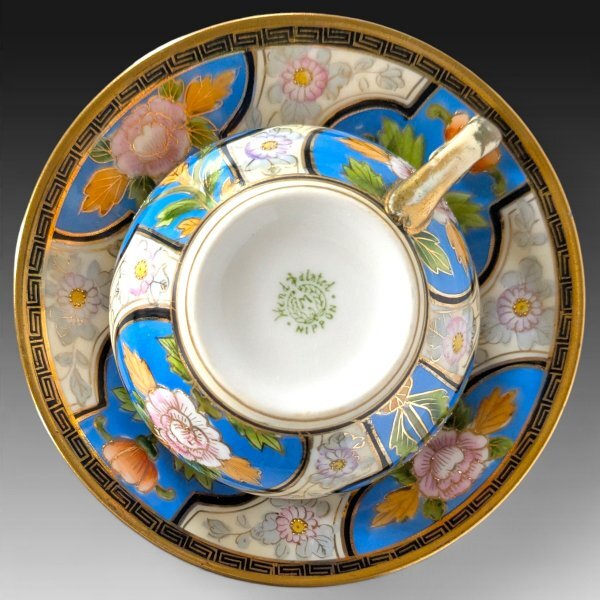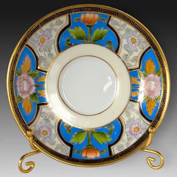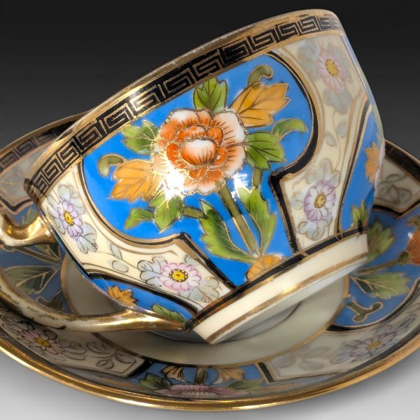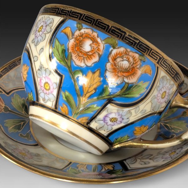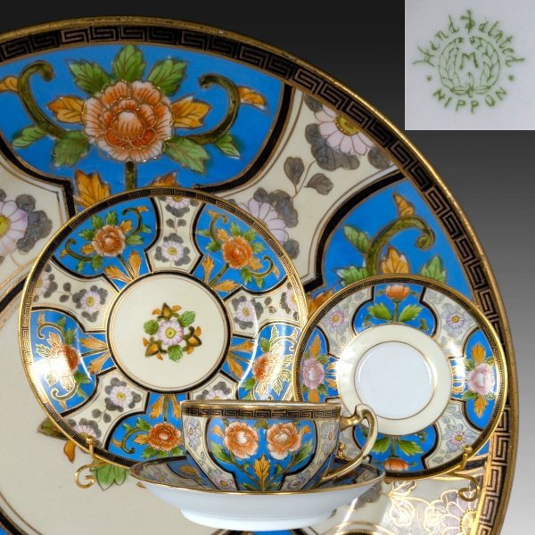 | 希少/ オールドノリタケ銘品!トリオ カップ&ソーサー&プレート 手描き 金彩装飾 花文様 アールデコ調 1910年頃 M-Nippon印 オマケ付1006 |