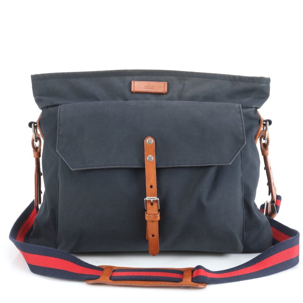 1円■極美品■グッチ■レザー ショルダーバッグ 斜め掛け メッセンジャー ビジネス 通勤 トート 256312 ネイビー A4 メンズ ERE CW19-10