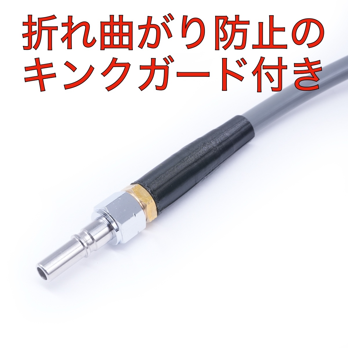 軽量な樹脂製のホースでありながら、純正ホースのように巻きグセがなく、柔軟でねじれにくくなっており、とても作業しやすいホースです。