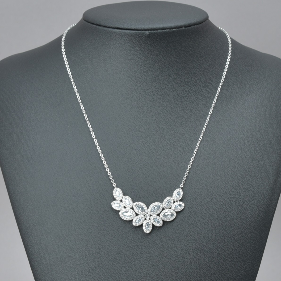 新品 スワロフスキー バロン ネックレス 箱付き フラワー ローズ シルバー