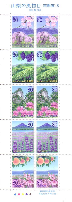 「山梨の風物Ⅱ」の記念切手です(80円切手X10枚)。送料は普通便110円(郵送 複数落札でも同一料金)になります。
