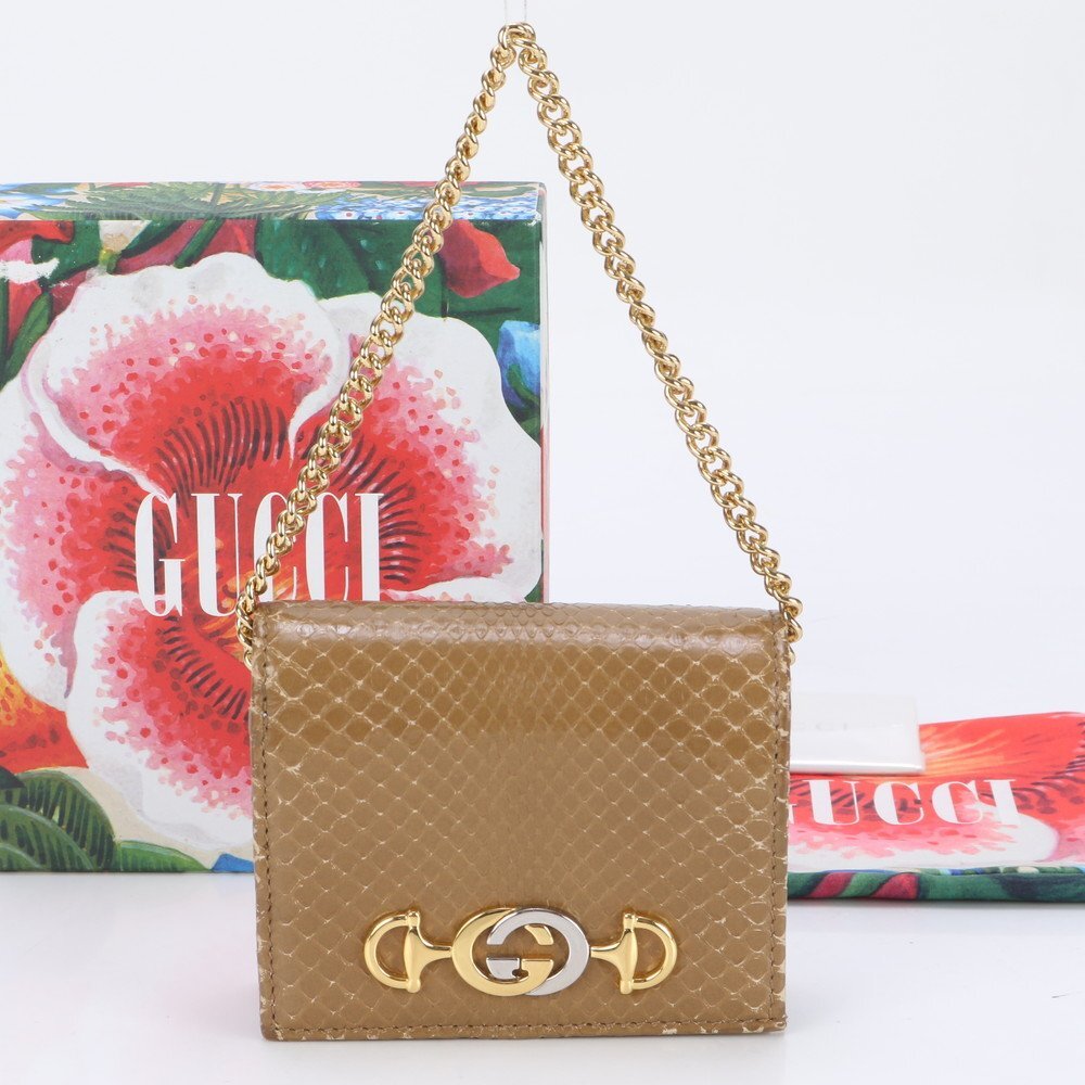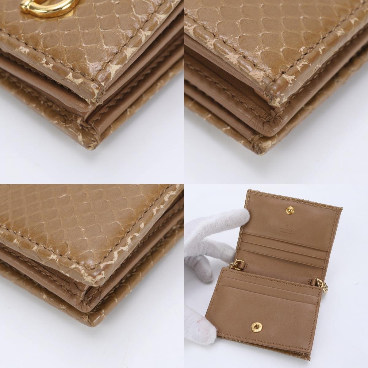 1円 極美品 グッチ ズゥミ チェーン ハンドル パイソン レザー 二つ折り 財布 コンパクト ウォレット 長財布 570660 レディース EKE BL12-6
