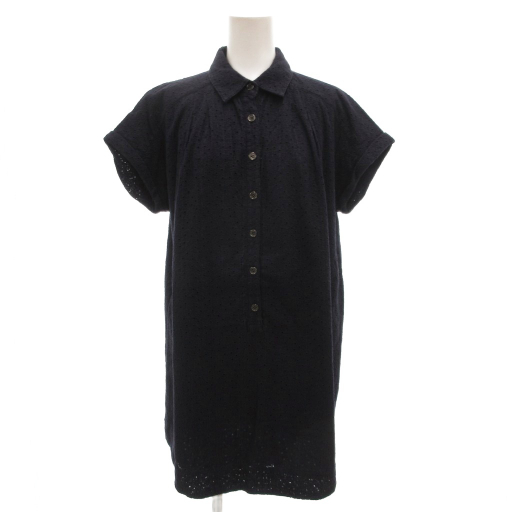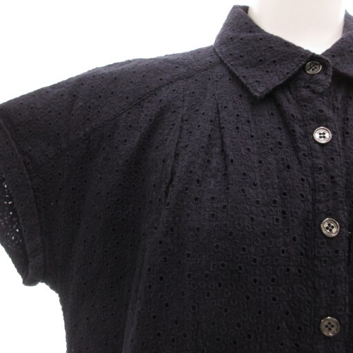 バーバリー ロンドン BURBERRY LONDON シャツチュニック 半袖 40 M 紺 ネイビー パンチング /AE レディース