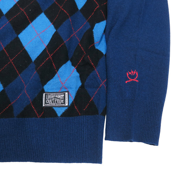 NEIGHBORHOOD ネイバーフッド ARGYLE.V/W-KNIT.LS TSNH-KN-M01 アーガイル ブイネック ニット ブルー トップス セーター サイズM Octk