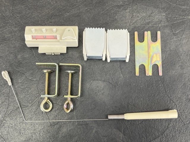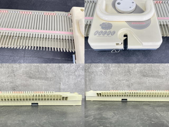 付属品トジ針以外そろっております。メリヤス針の中心部錆が見られます。本体全体に黄ばみ、色褪せが見られ、ガイドブック黄ばみ汚れが目立ちます。
