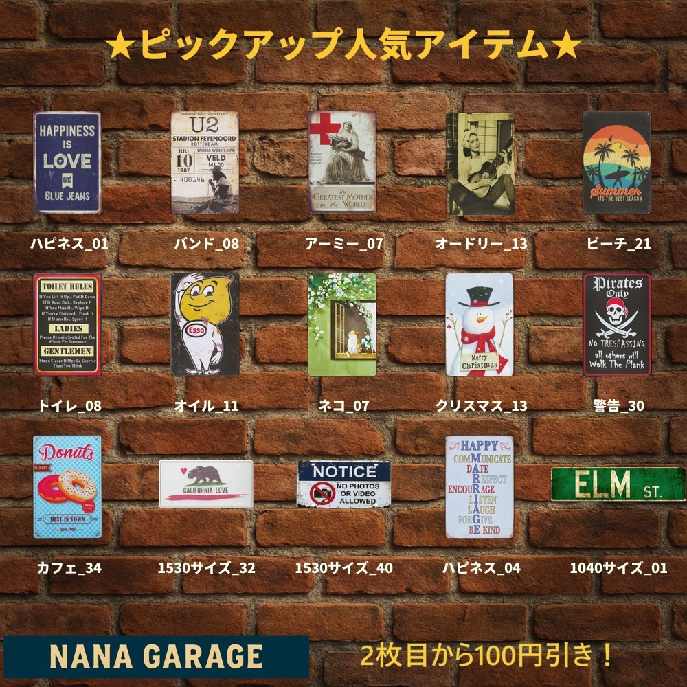 海外直輸入のヴィンテージ風ブリキ看板を中心に、
