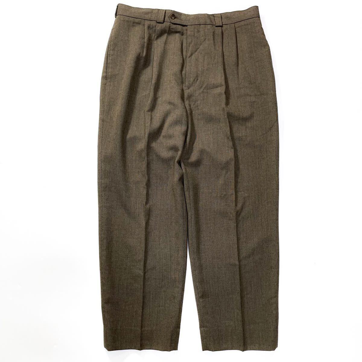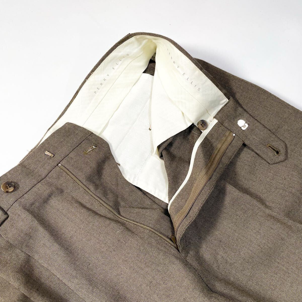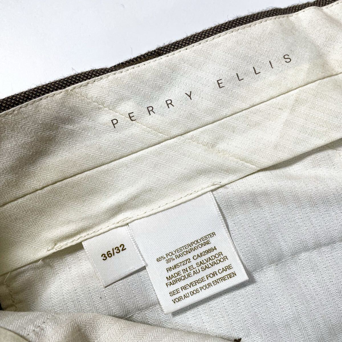 80s 90s Perry ellis ペリーエリス レーヨン ポリ 2タック スラックス ブラウン ビンテージ usa old 36×29 ギャバジン パンツ 00s 茶
