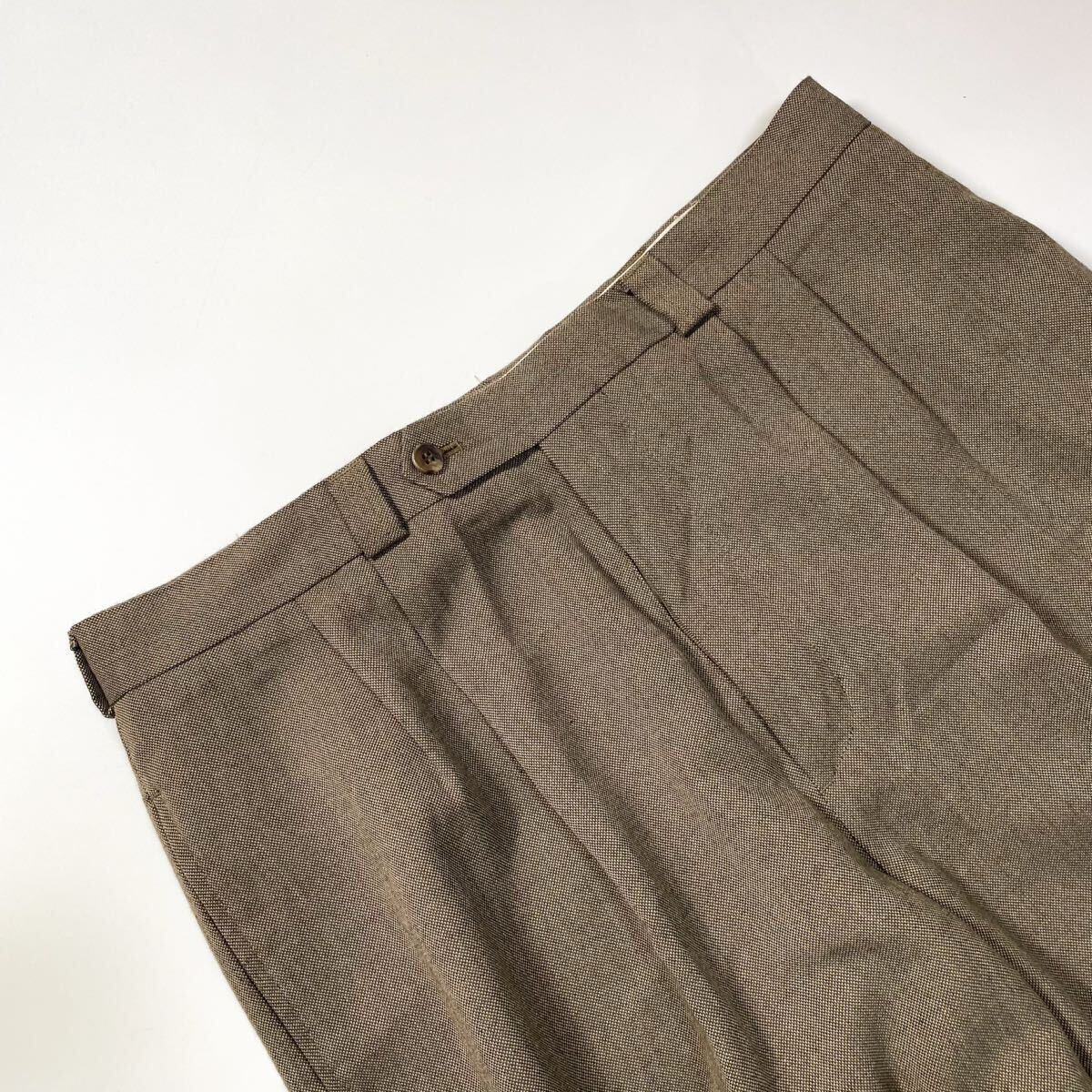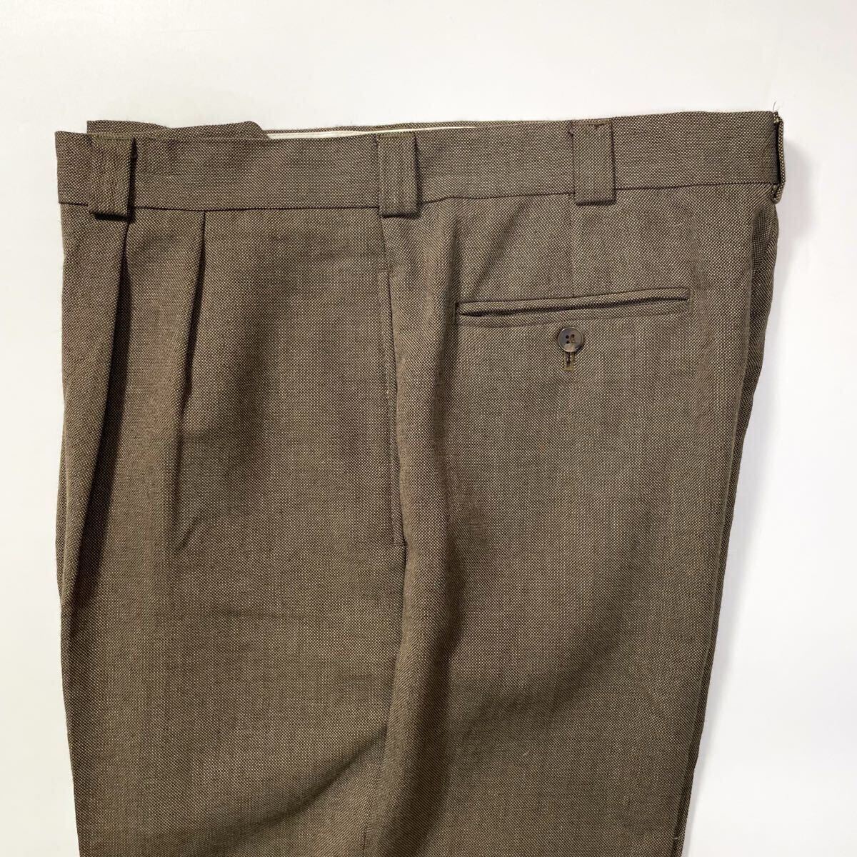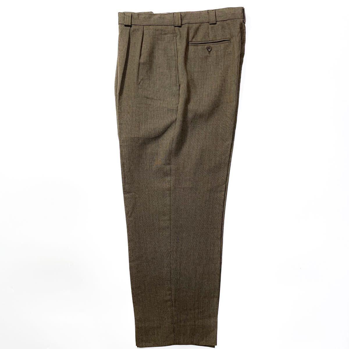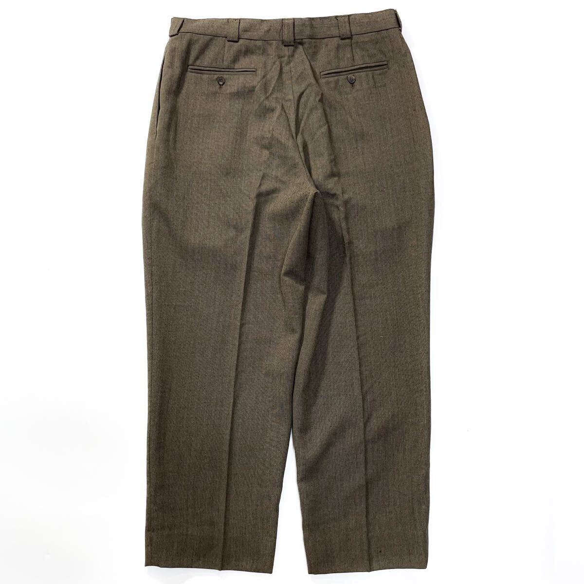 80s 90s Perry ellis ペリーエリス レーヨン ポリ 2タック スラックス ブラウン ビンテージ usa old 36×29 ギャバジン パンツ 00s 茶