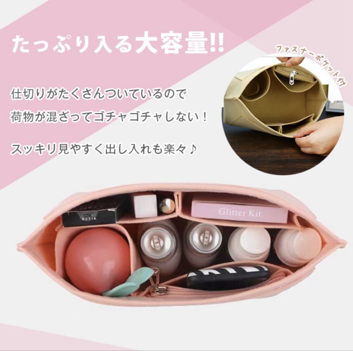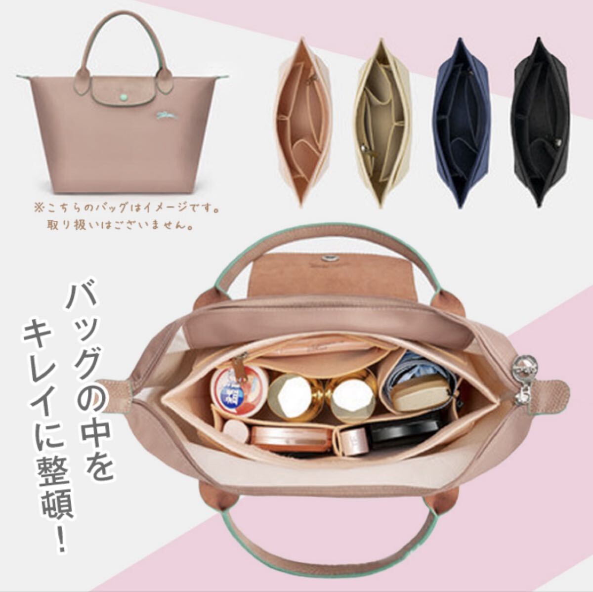 バッグインバッグ Mサイズ ロンシャン対応 型崩れ防止 インナーバッグ ポケット 収納 ボトルフォルダー 整理整頓 大容量 軽量 ダークグレー