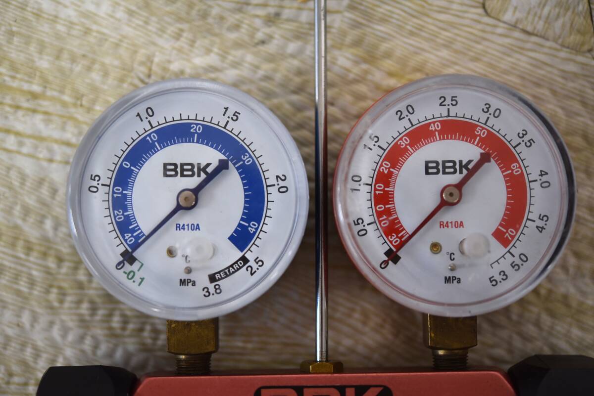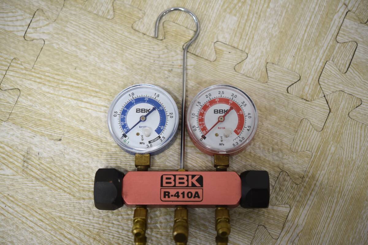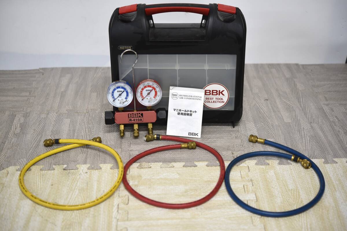 XY10-42 BBK ゲージマニホールド キット R-410A エアコン用 エアコン工事 ガス圧力測定 冷媒 気密試験 ガス充填 動作未確認 現状品