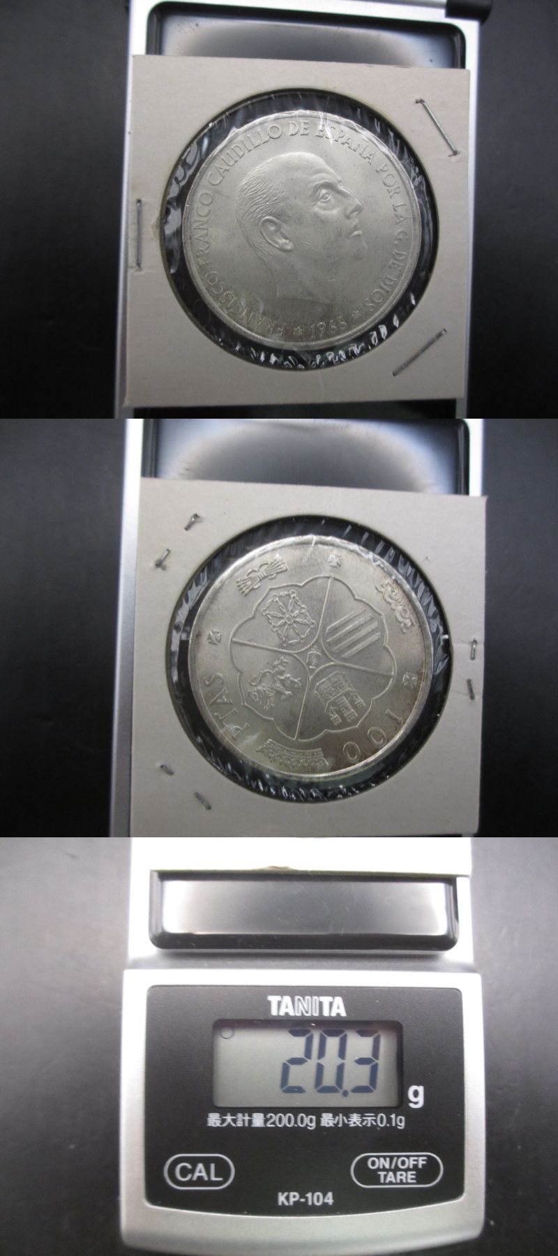 〇1966年発行 スペイン 100ペセタ銀貨〇KN1650
