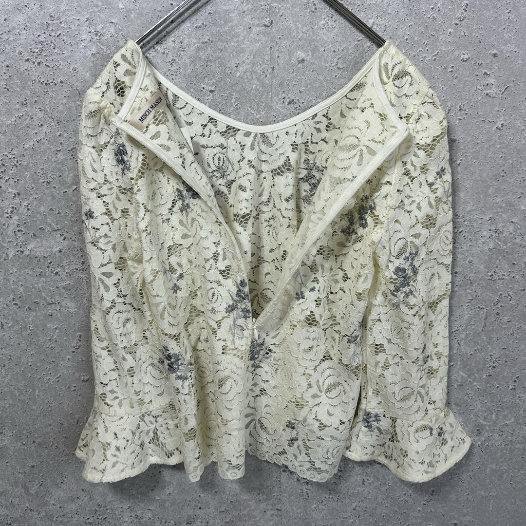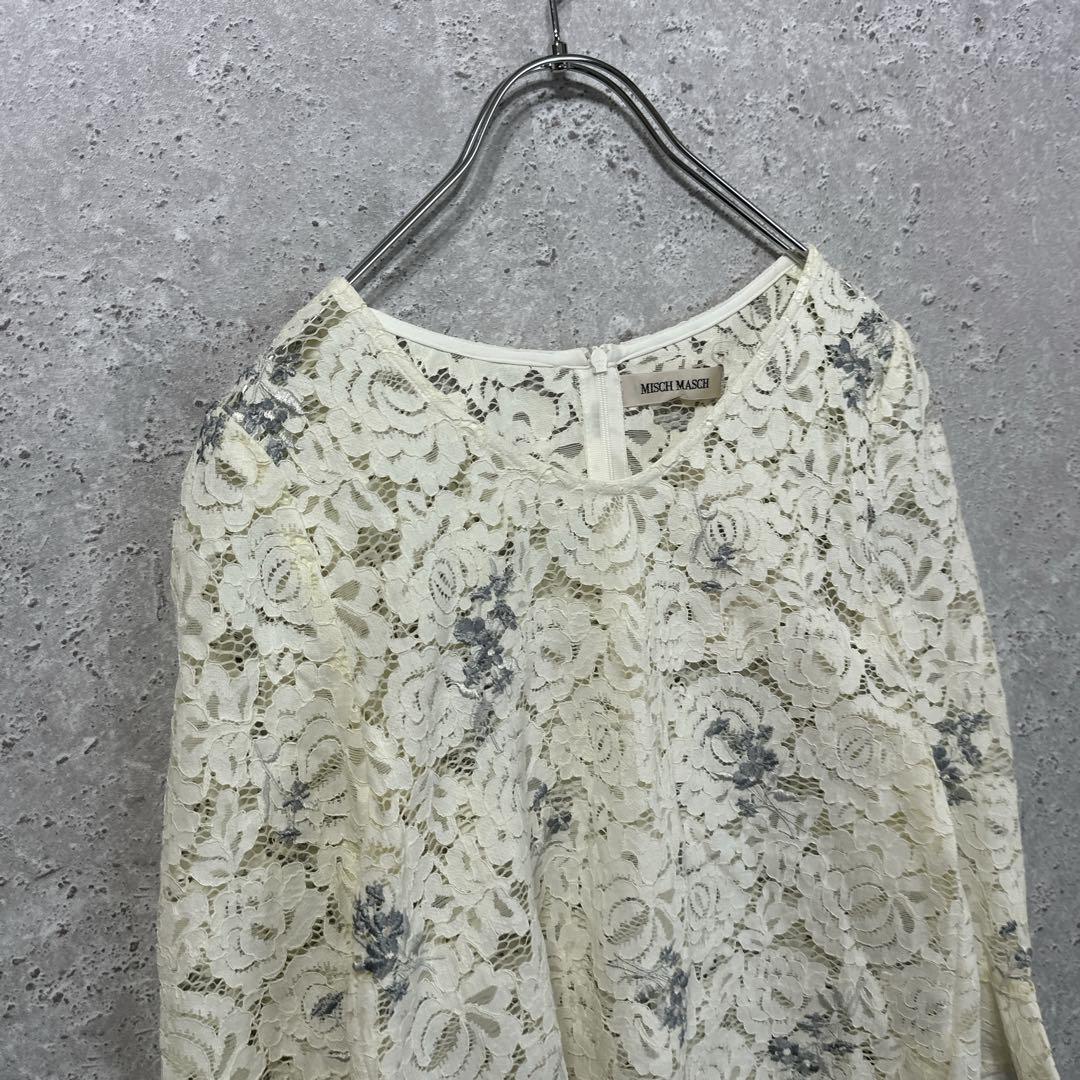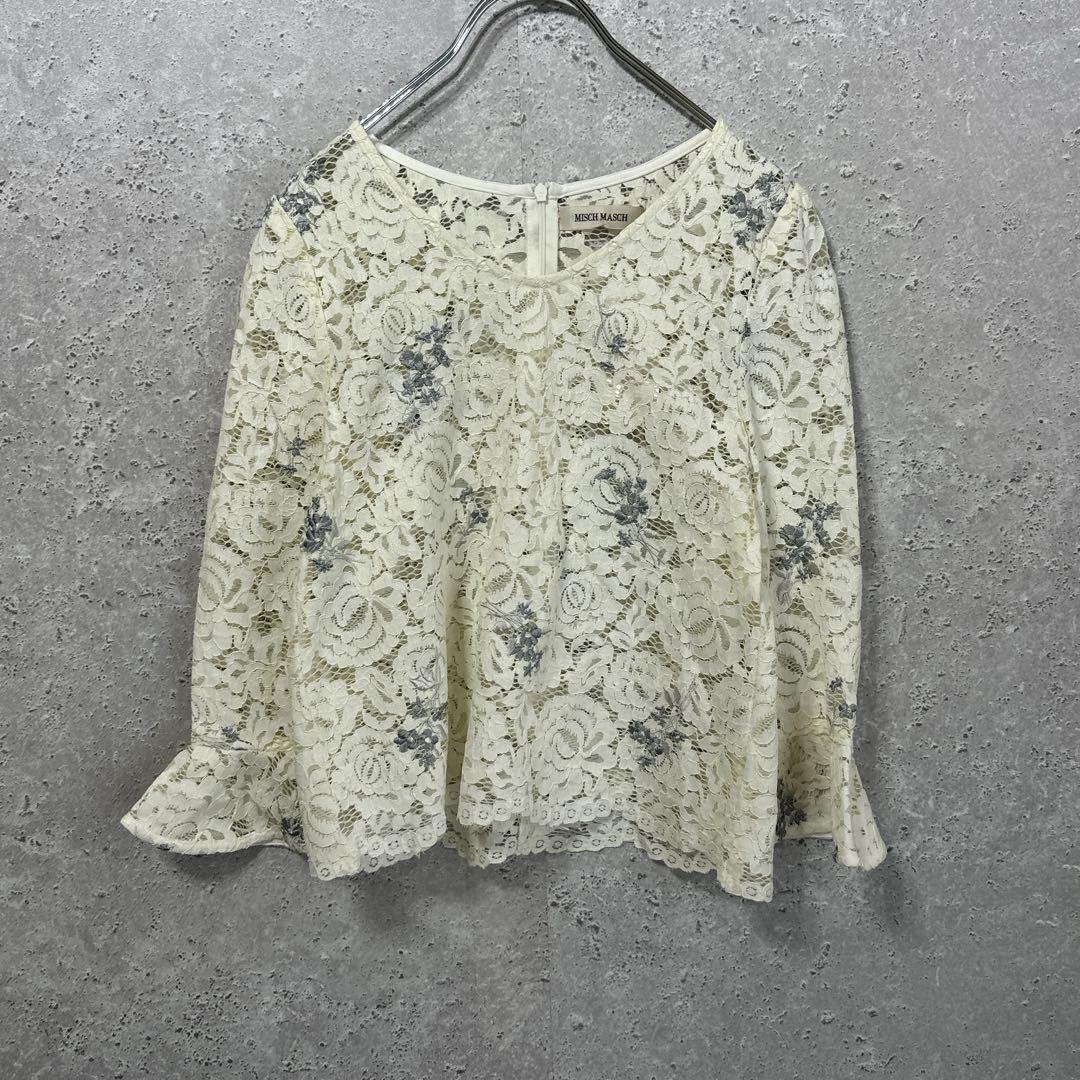 【タグ付き】ミッシュマッシュ(M)レースブラウス*花柄*透け感*バトーネック
