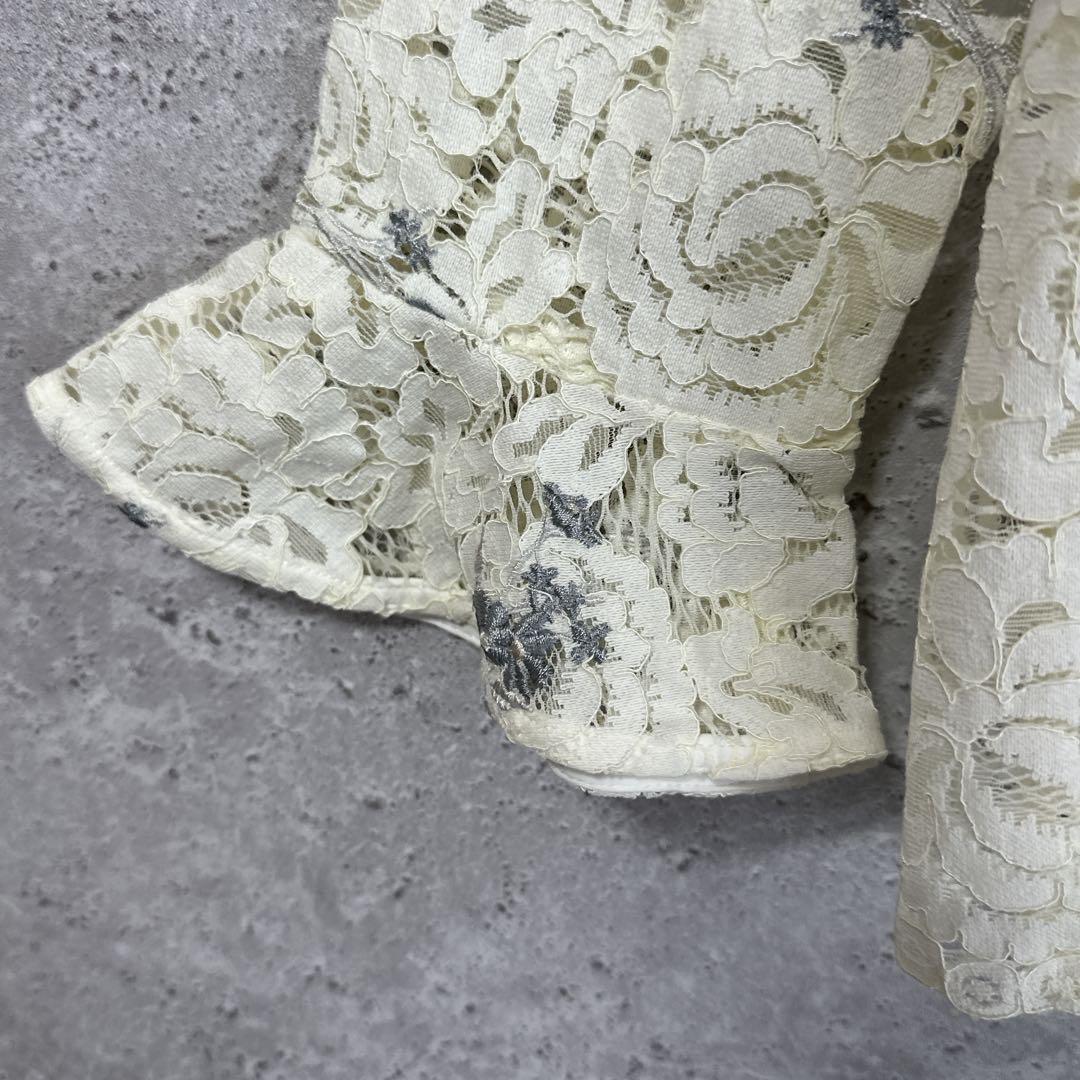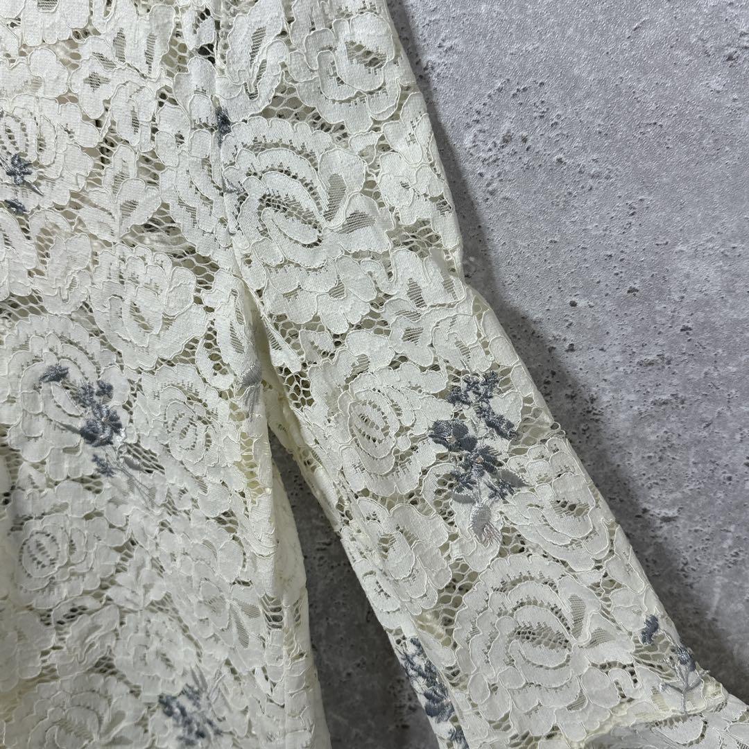 MISCH MASCH(ミッシュマッシュ)の総レースブラウスです。繊細なフラワーレースにほんのりグレーの刺繍が入った華やかなデザイン。袖口はフレアになっていて女性らしいシルエットを演出します。裏地付きで透け感も気にならず安心して着用可能。上品なホワイトカラーでスカートにもパンツにも合わせやすく、通勤からお出かけまで幅広く活躍します。