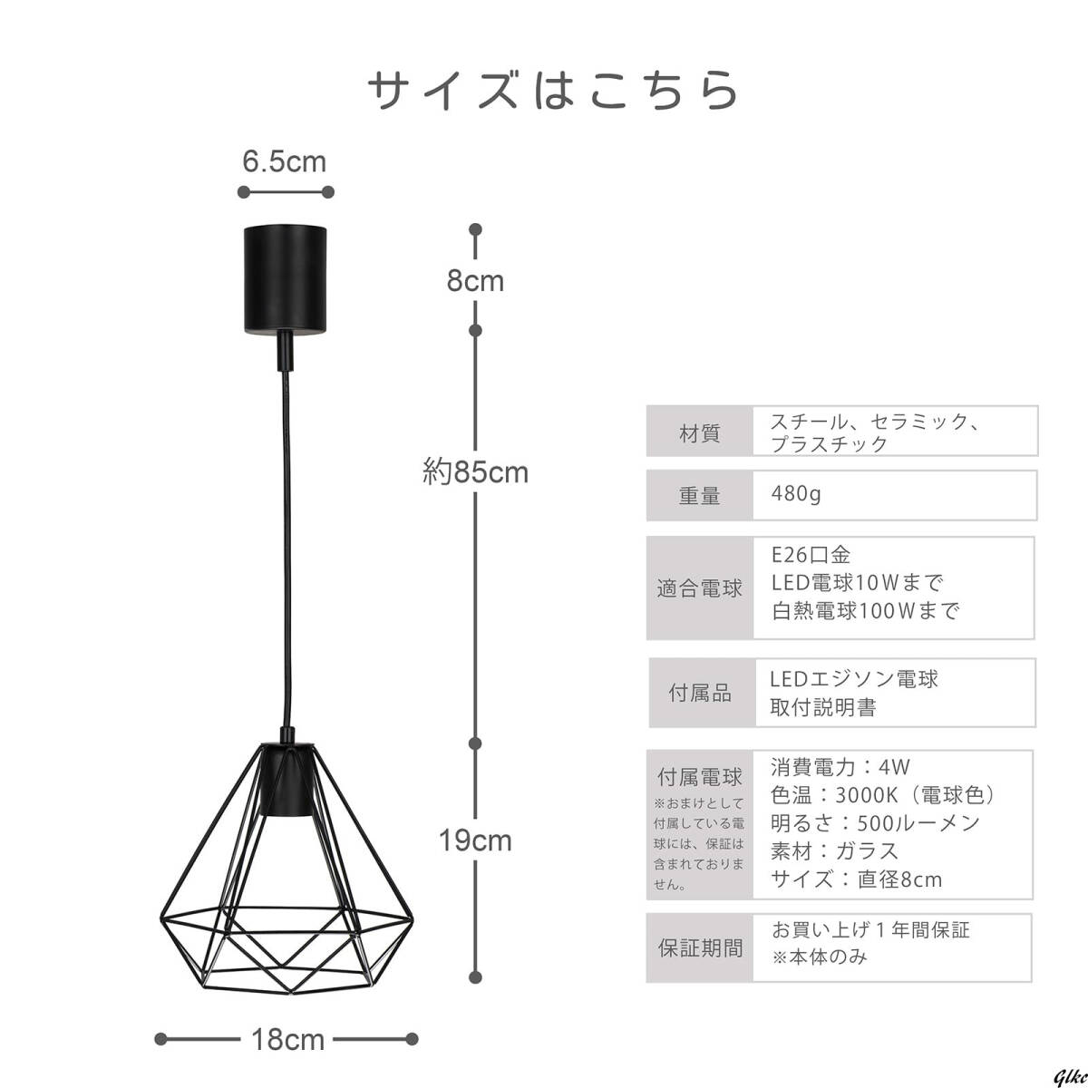 ・付属品:4W・3000K LEDエジソン電球(サービス品/保証対象外)