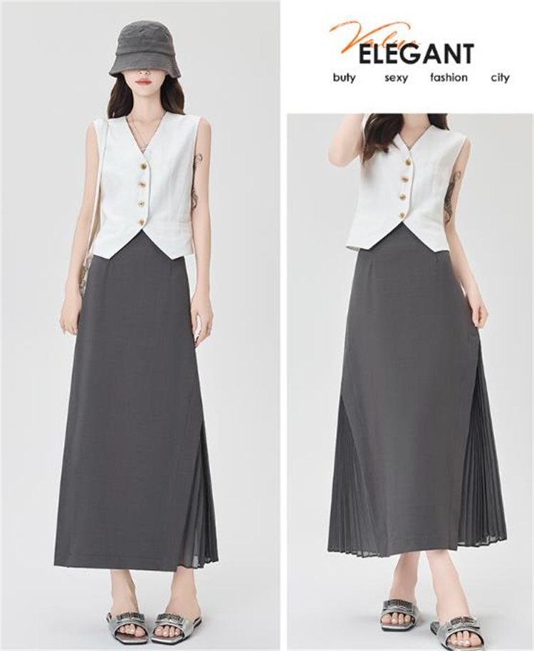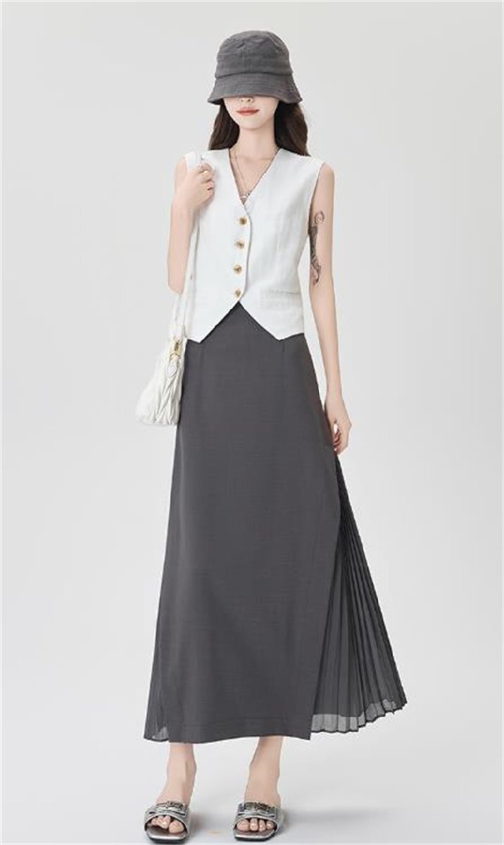 ロングスカート プリーツスカート きれいめ シンプル オフィスカジュアル お出かけ おしゃれ 通勤 仕事 OL レディース XL グレー