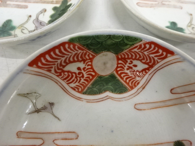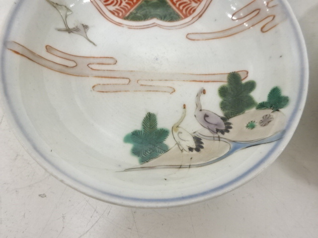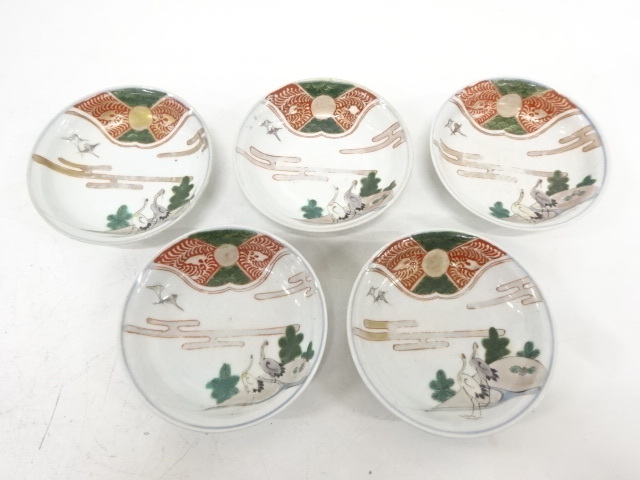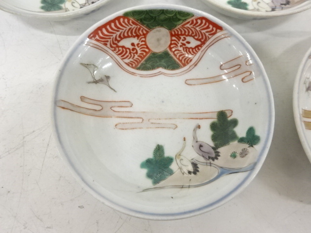 古伊万里 染付赤絵 鶴 手塩皿 5客揃 (AJAE2DHP-022)