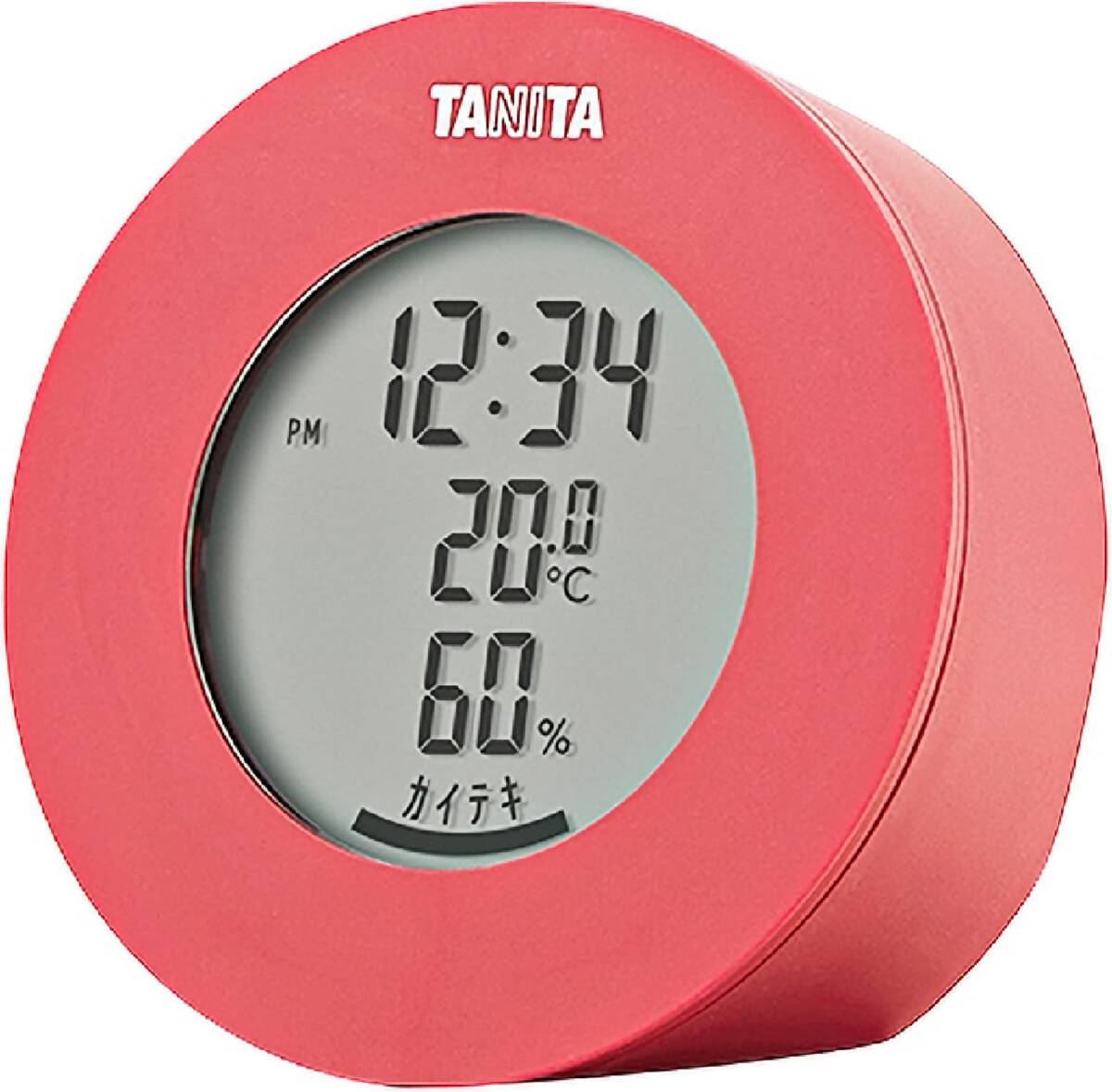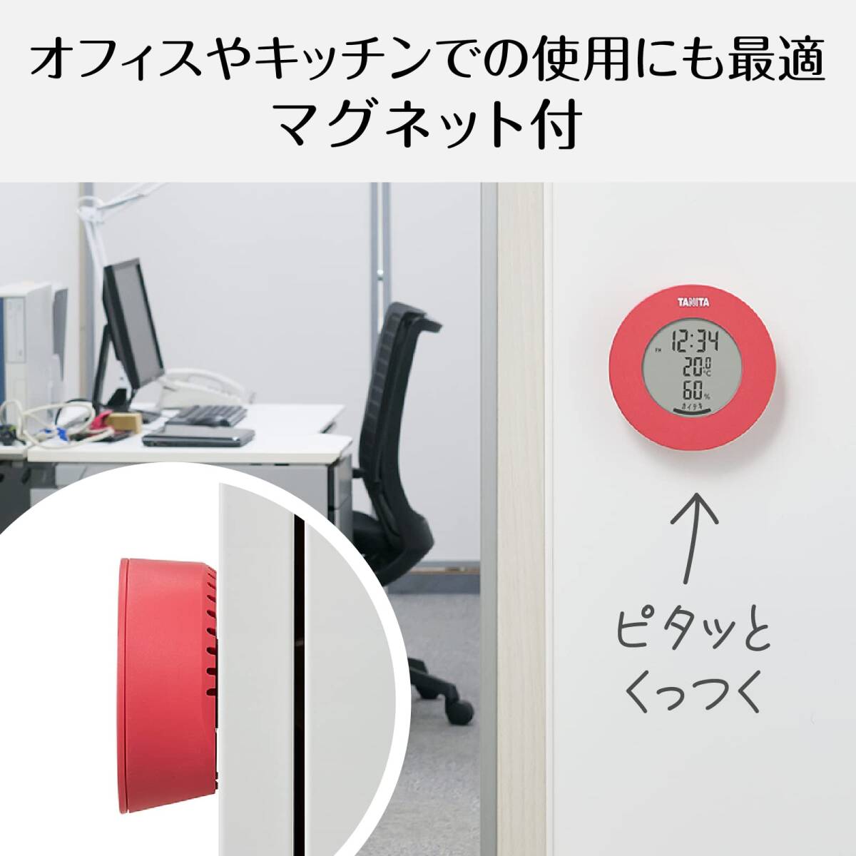 タニタ 温湿度計 時計 温度 湿度 デジタル 卓上 マグネット ホワイト ピンク TT-585 PK
