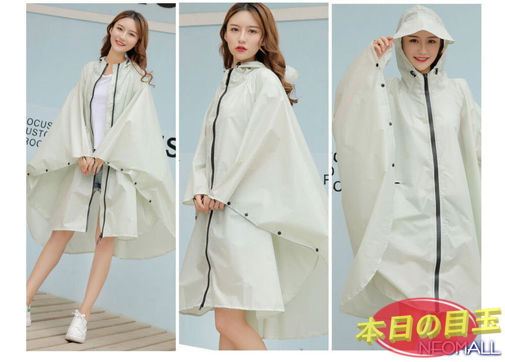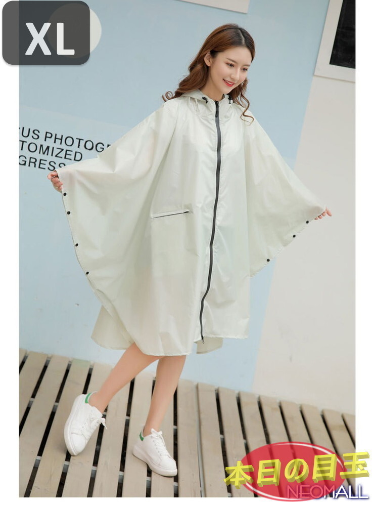 1スタ ☆ メンズ レディーズ レインポンチョ 【537】 ホワイト XLサイズ レインウェア 通勤 通学 レジャー 自転車 カッパ 合羽 雨具
