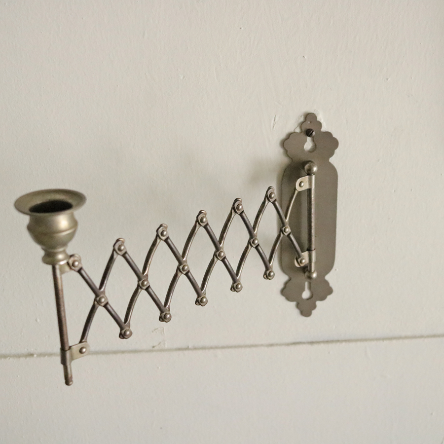 【1910年代 手のひらサイズ シザーアーム燭台 フランスアンティーク】蛇腹 ジャバラ アコーディオン ろうそく立て 壁掛け 教会 キャンドルホルダー キャンドルスタンド