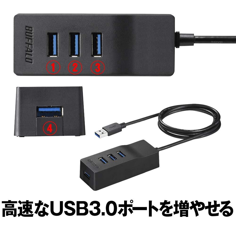 BUFFALO USB3.0 セルフパワー 4ポートハブ ブラック 外付けHDDに最適 上挿しモデル マグネット付き BSH4A315U3BK