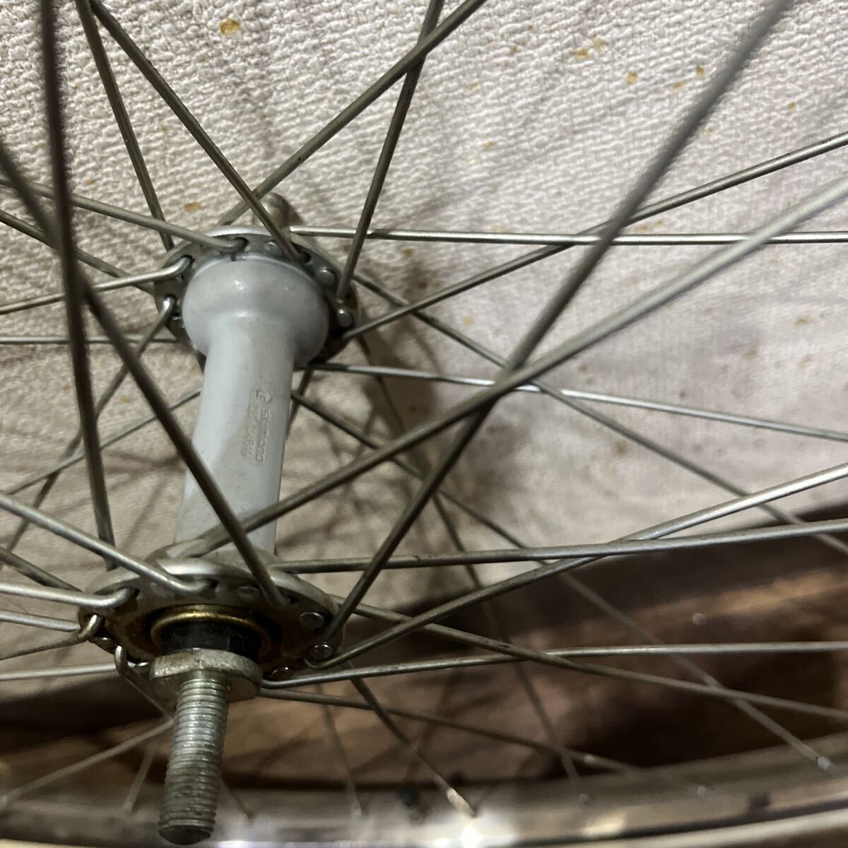 前輪シマノJAPANハブです。26インチ、ウカイステンレスリムです。汚れ、傷等あります。エンド幅約92mm。