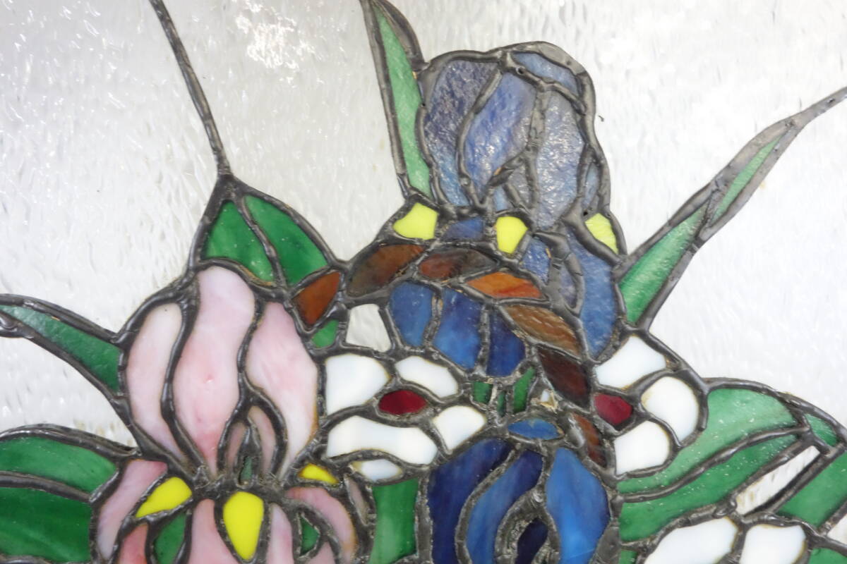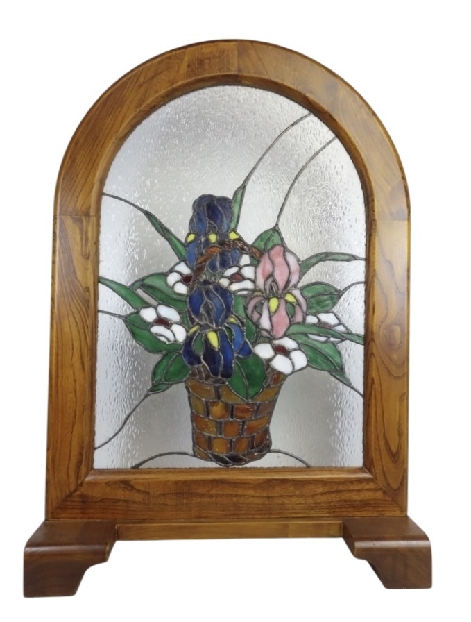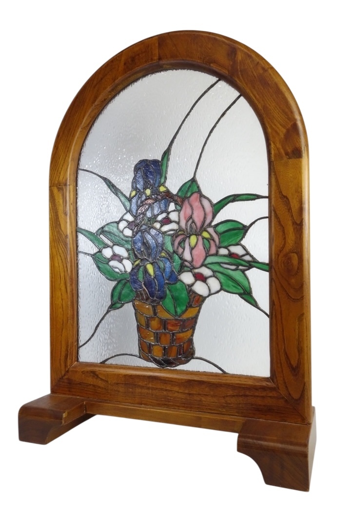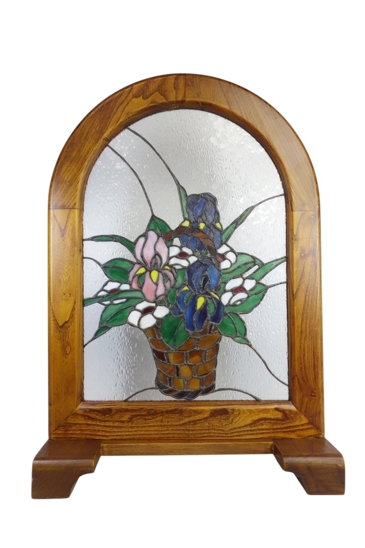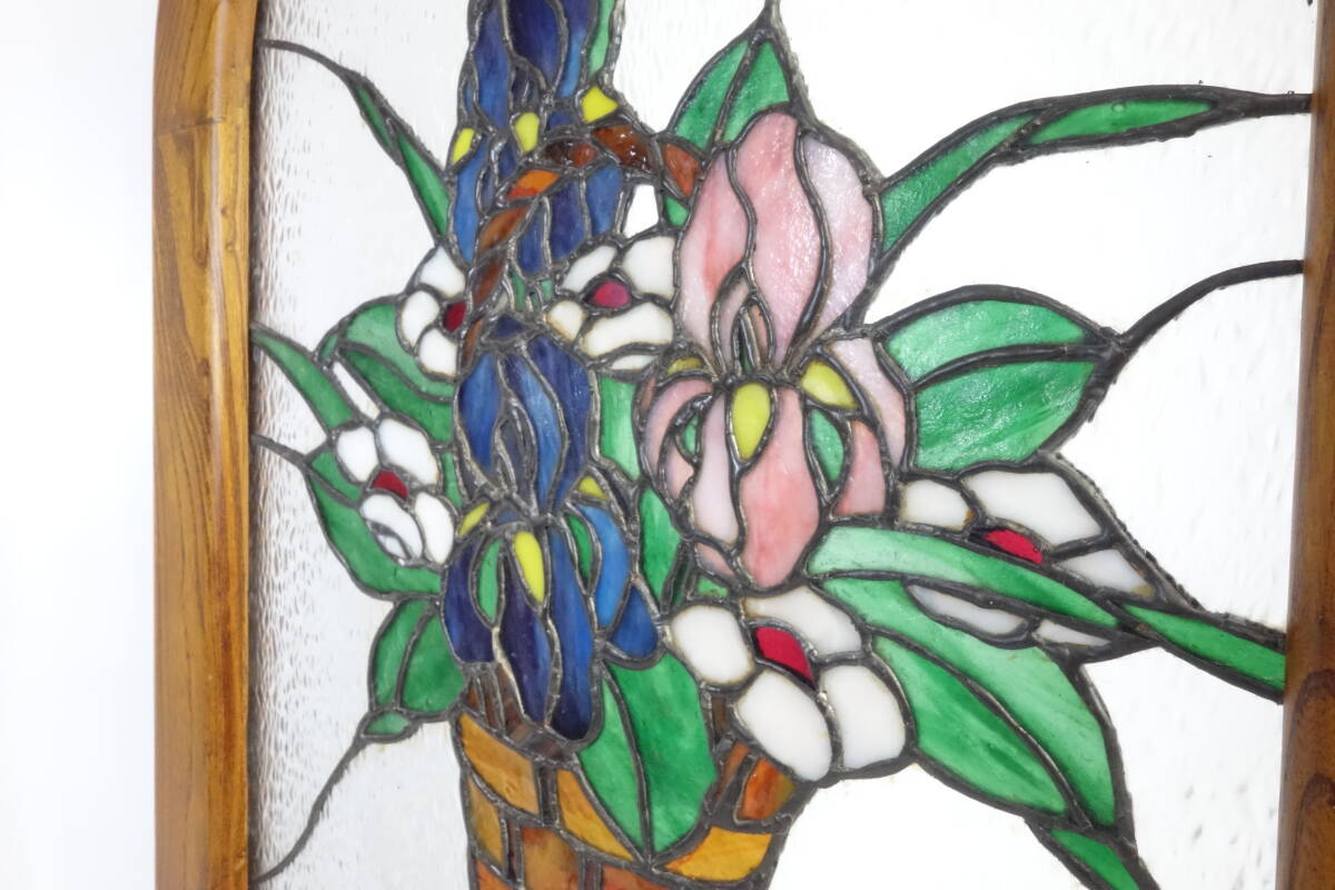 華やかな花々のデザインが美しい! 昭和ビンテージ ステンドグラス 木製フレーム ハンドメイド 1970年代〜1980年代 KEA710