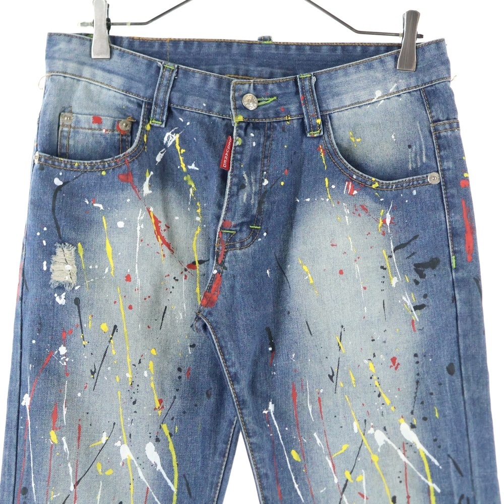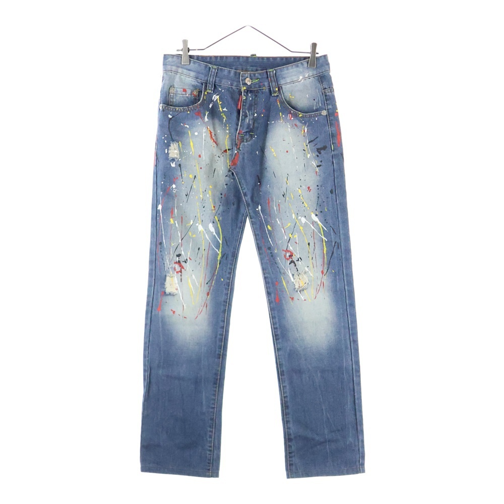 DSQUARED2 ディースクエアード ペイントストレートデニムパンツ インディゴ
