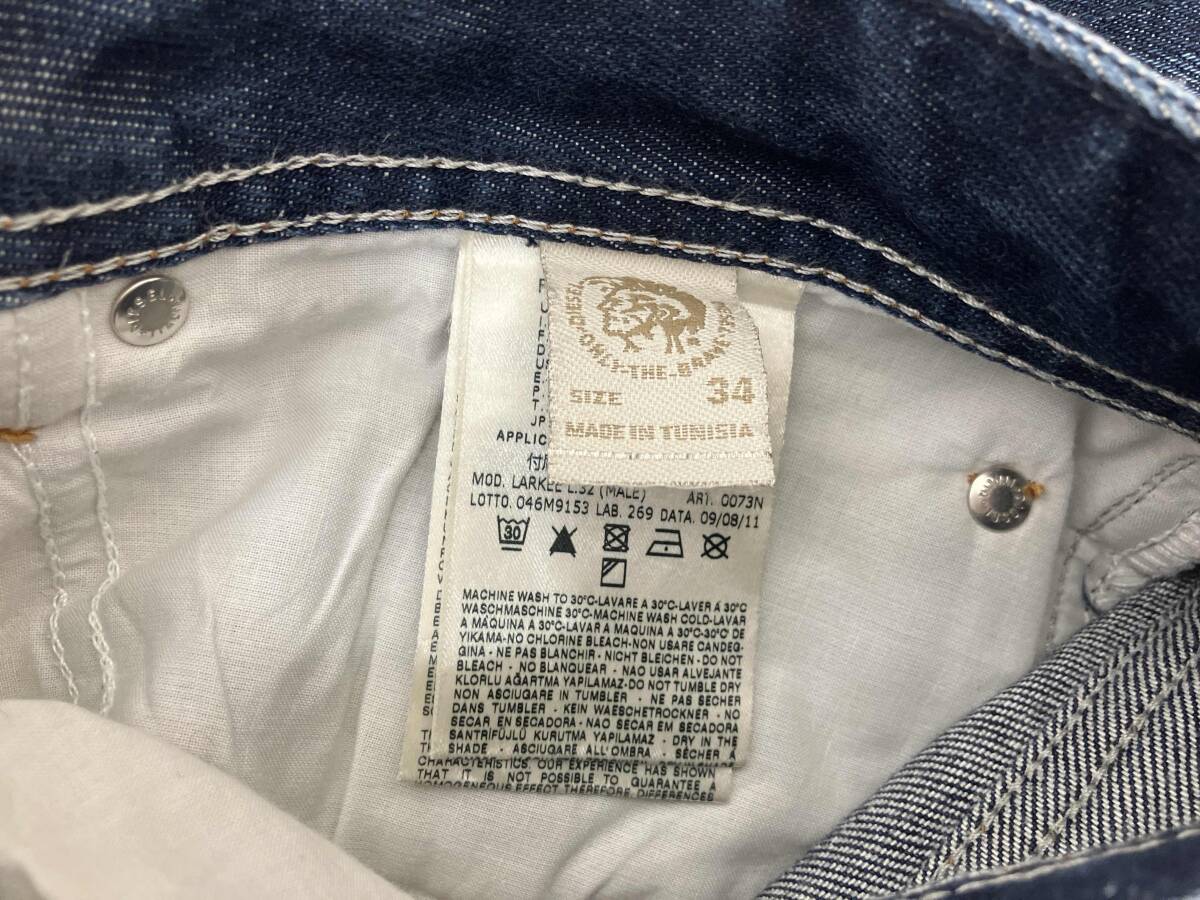 DIESEL/ジーンズ/LARKEE 0073N W34 L32 インディゴ ウエスト約45cm 股上 約27cm 股下 約80cm 裾幅 約20cm