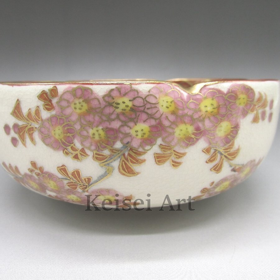 薩摩焼 金襴手花鳥文鉢 秀山 米国より里帰り