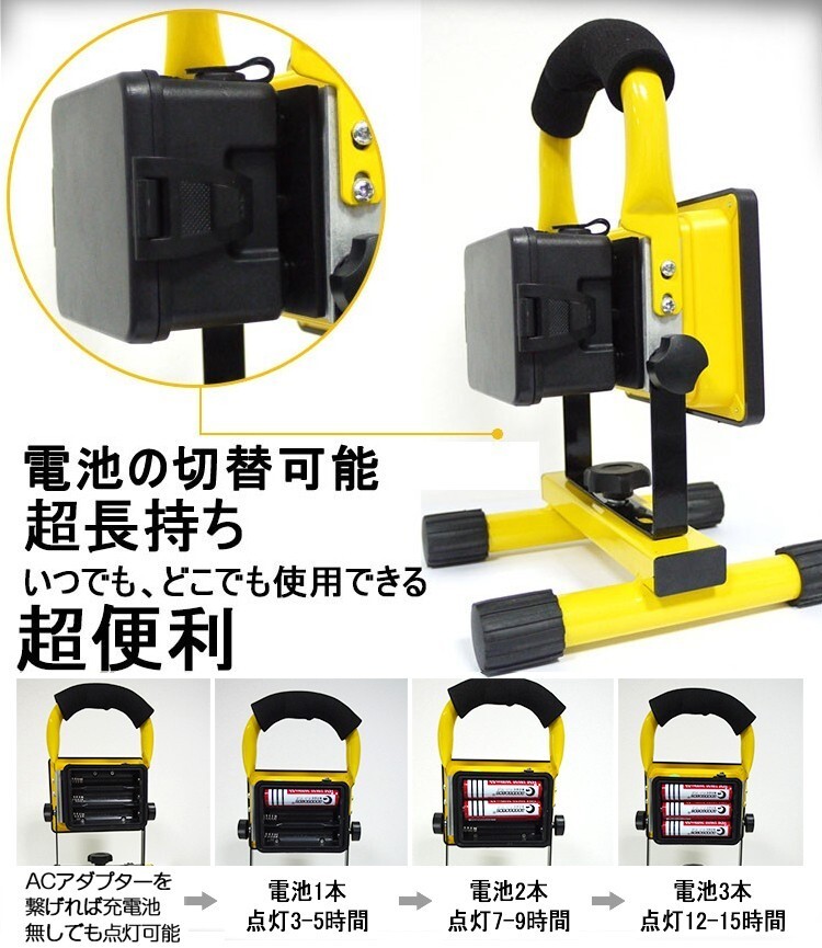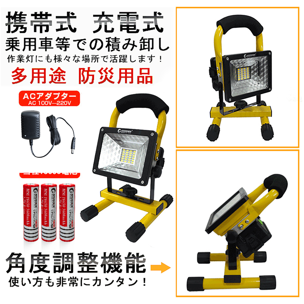 投光器本体、スタンド、18650型電池*3本、 ACアタプターZC42-A 、