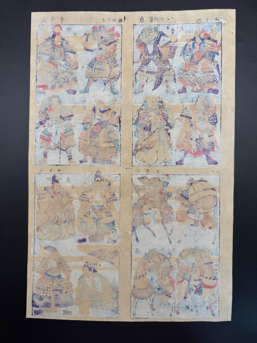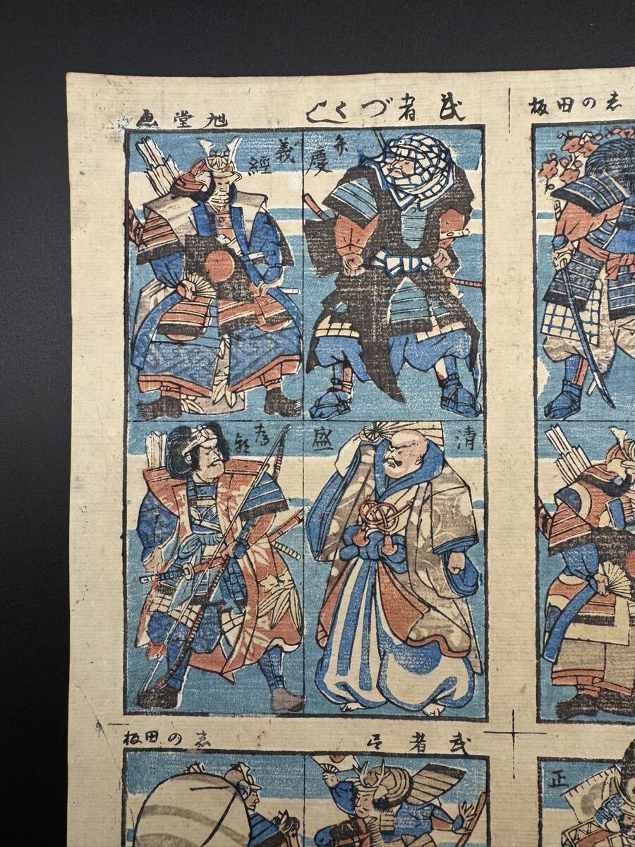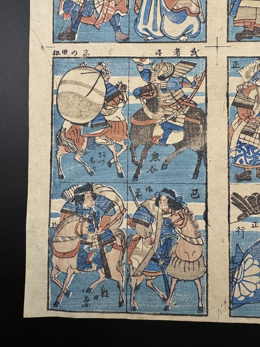 明治期/真作 旭堂画「武者づくし」本物浮世絵木版画 武者絵 おもちゃ絵 家康 秀吉 清正 義經 錦絵 大判