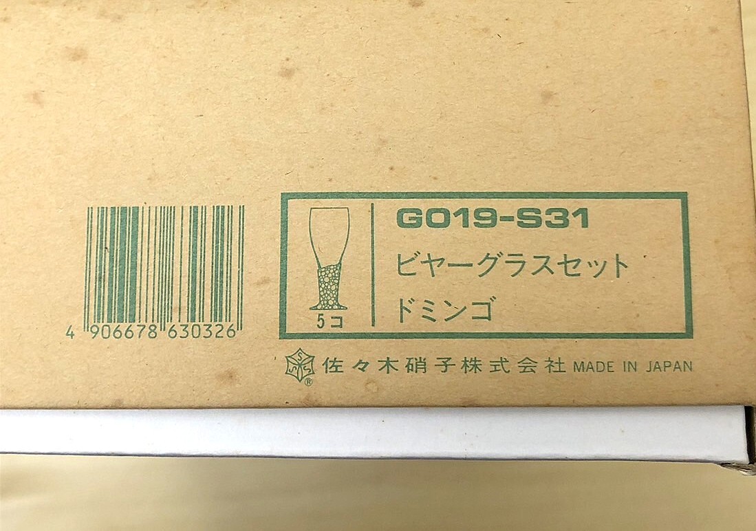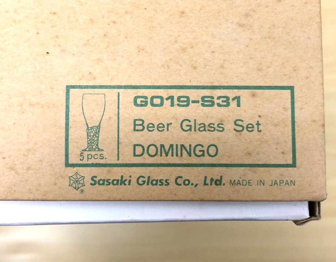 【K】【未使用保管品】ドミンゴ DOMINGO 5客セット ビアグラス コップ ビール ガラス工芸品 グリーン 台付グラス 佐々木硝子 冷酒