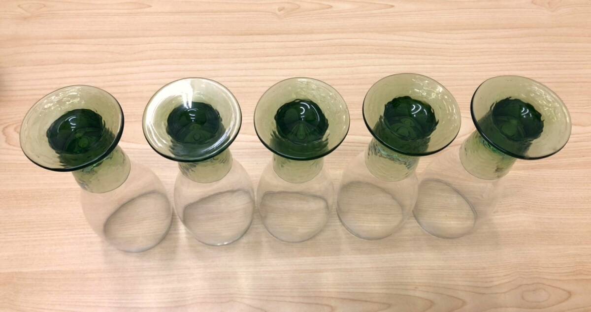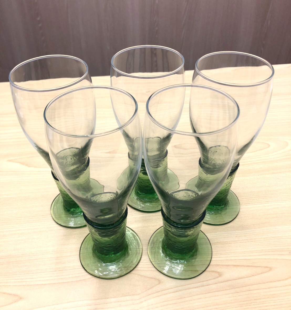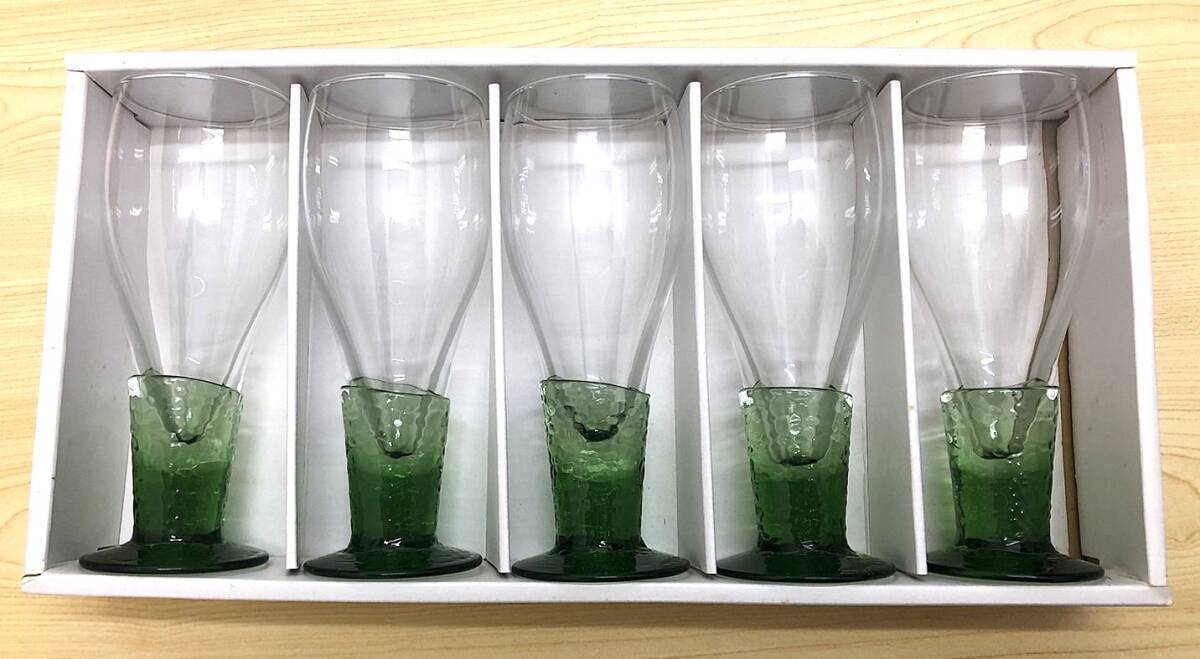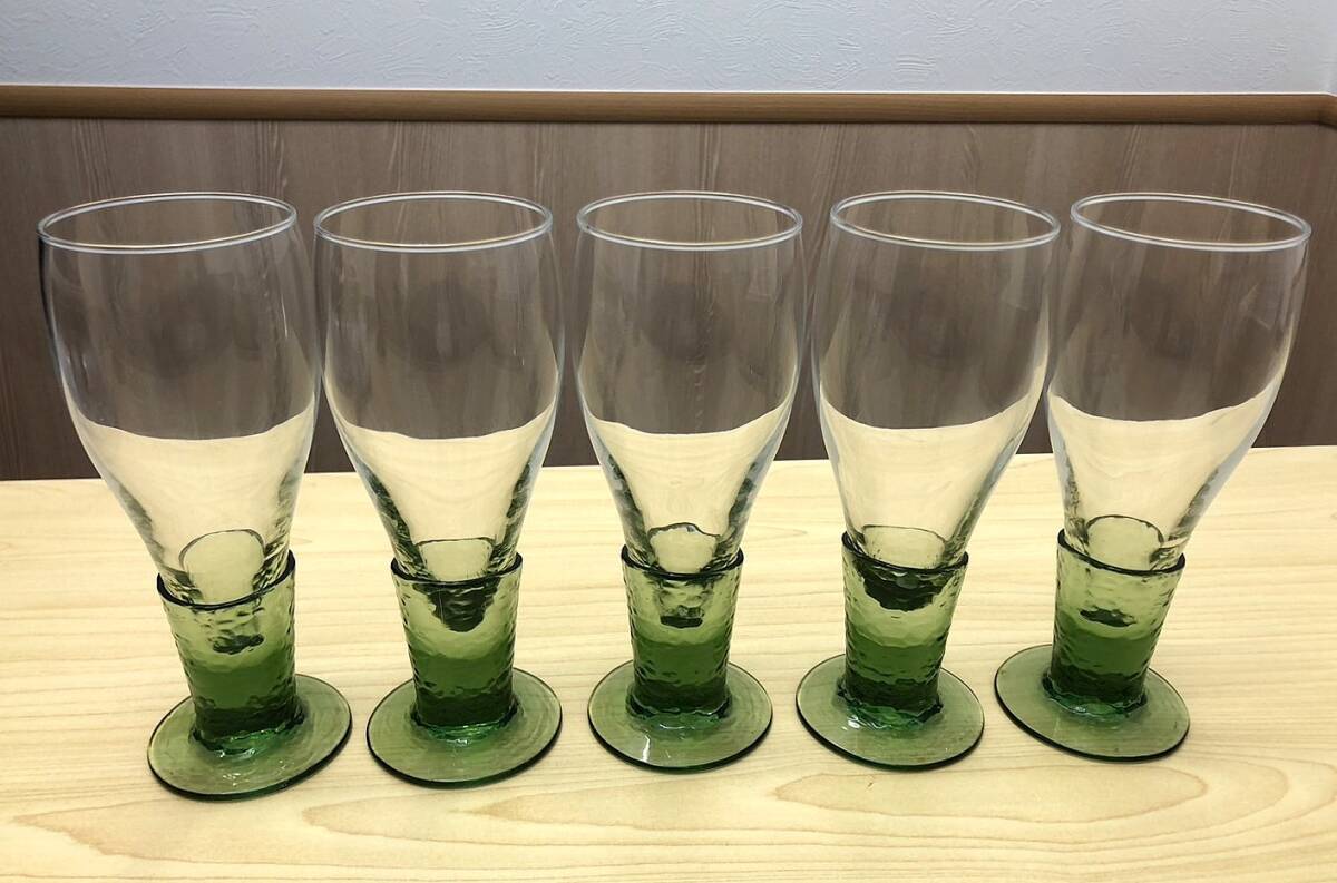 【未使用保管品】ドミンゴ DOMINGO 5客セット ビアグラス コップ ビール 冷酒 ガラス工芸品 グリーン 台付グラス 佐々木硝子