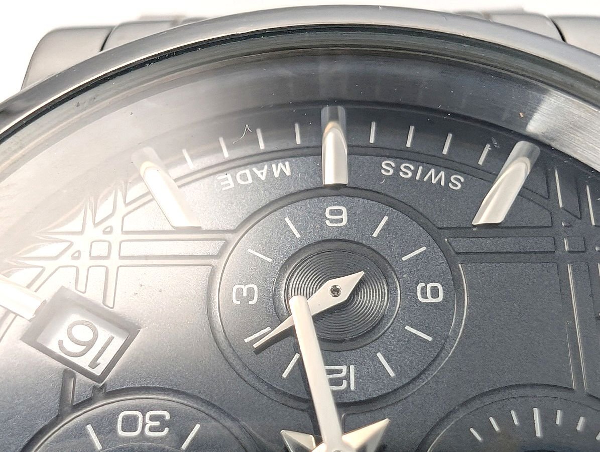 目立つ腐食はありません。 クロノグラフ針の初期位置にズレがあります。 |