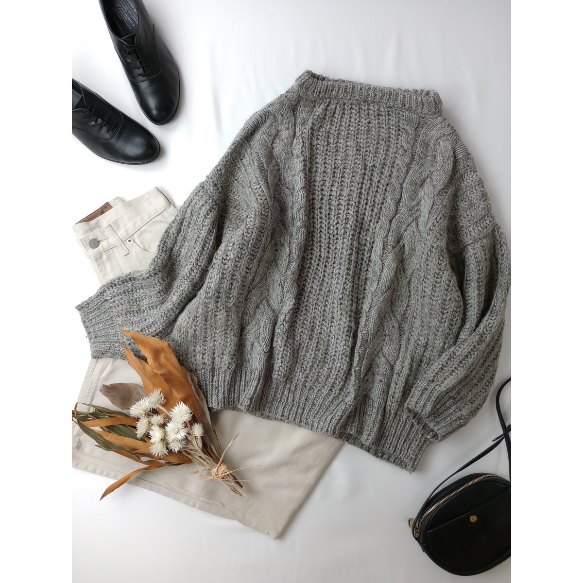 ichi イチ「暖かく包みこんでくれる」アルパカ モヘヤ ウール 毛 混 オーバーサイズ ミックス ニット プルオーバー グレー系(12M+0613)