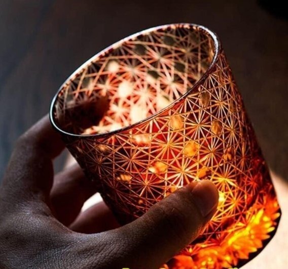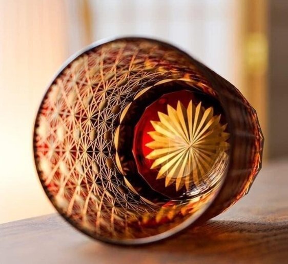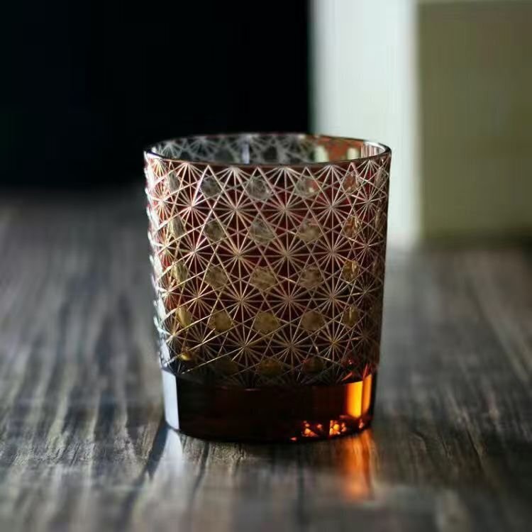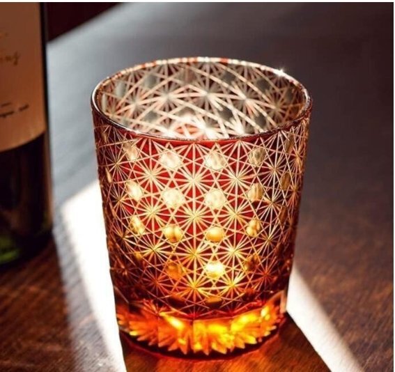 新作 グラス切子 菊繋ぎ紋 高級グラス 冷酒杯 手作りワインセット ロックグラス ビールウイスキーグラス 250ml 赤