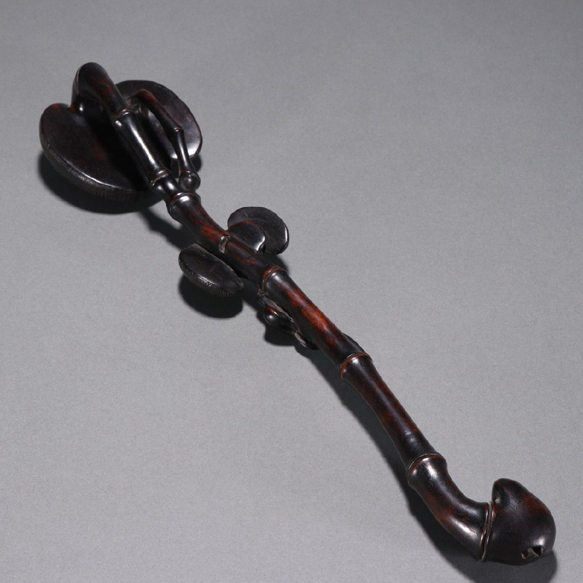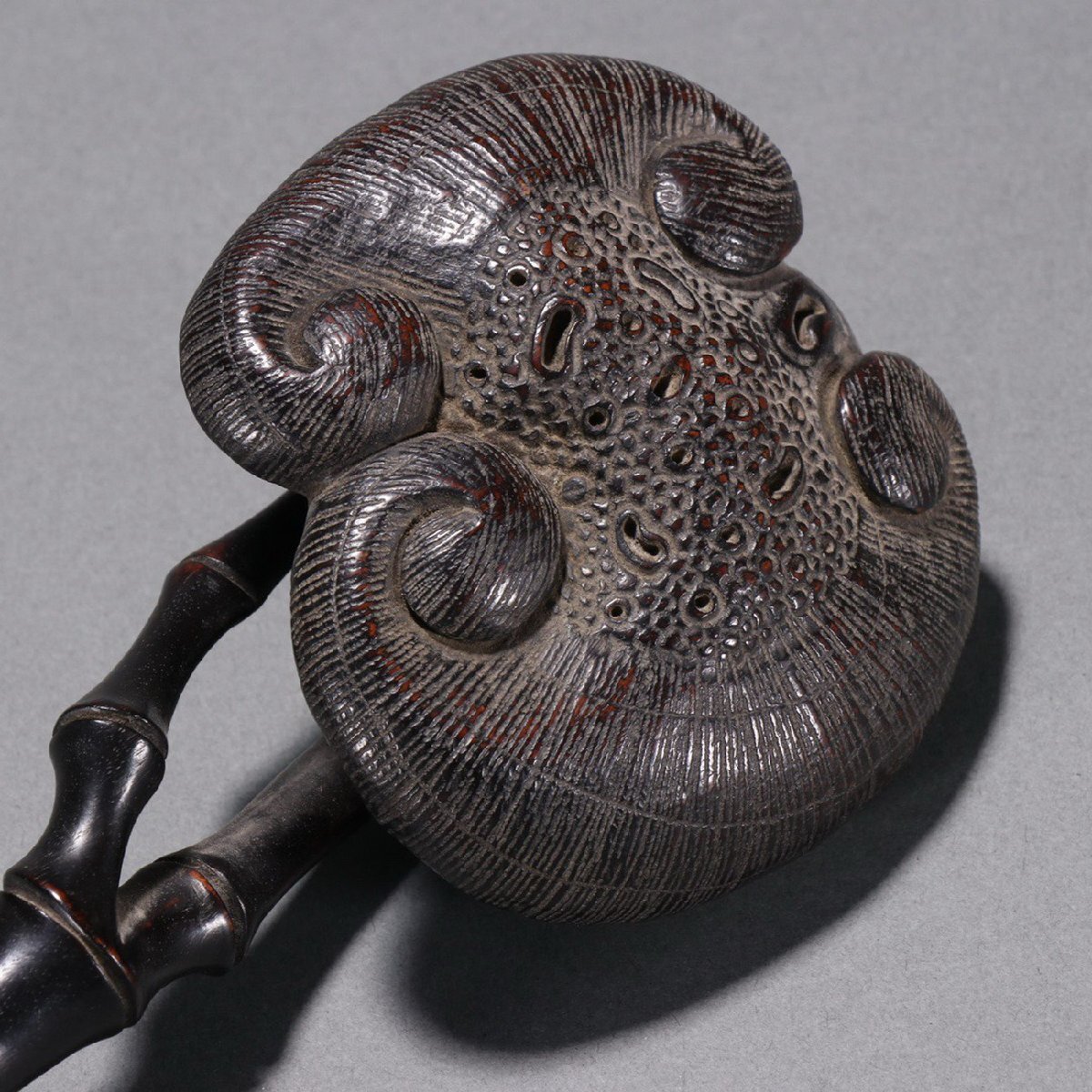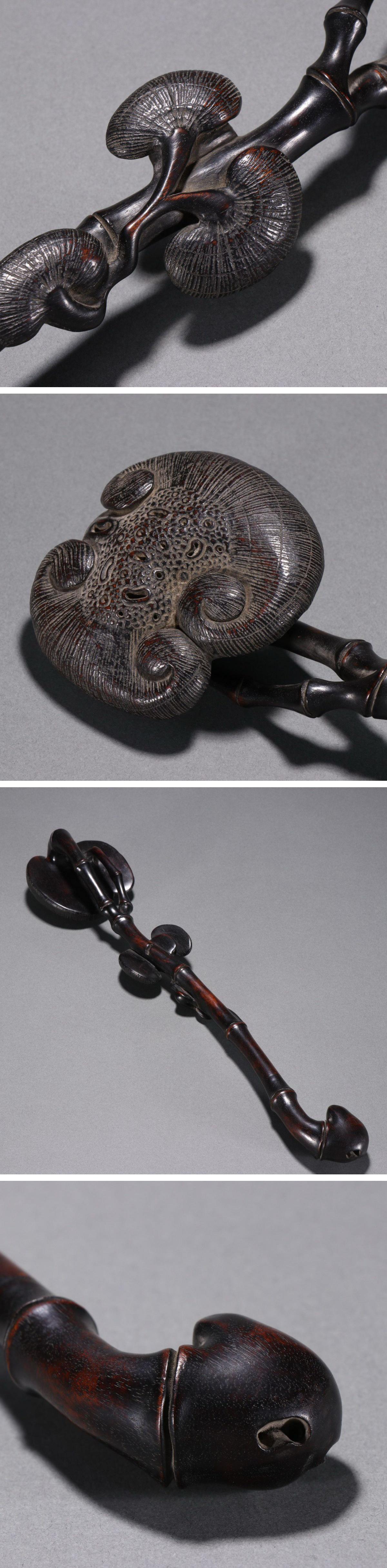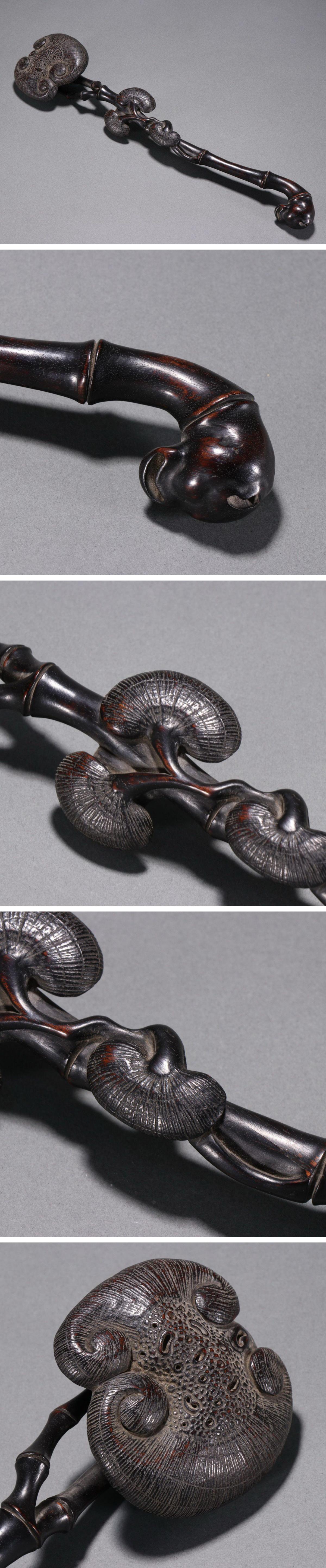 【清】某有名オークション購入 清時代 紫檀木 霊芝紋如意置物 材質保証 当時物 古置物 古擺件 古美術 時代コレクション7L9-OD5